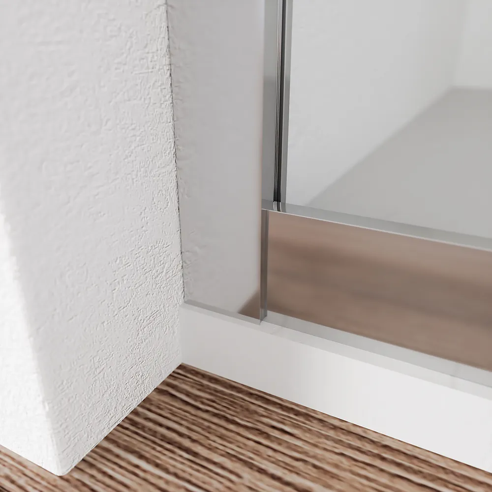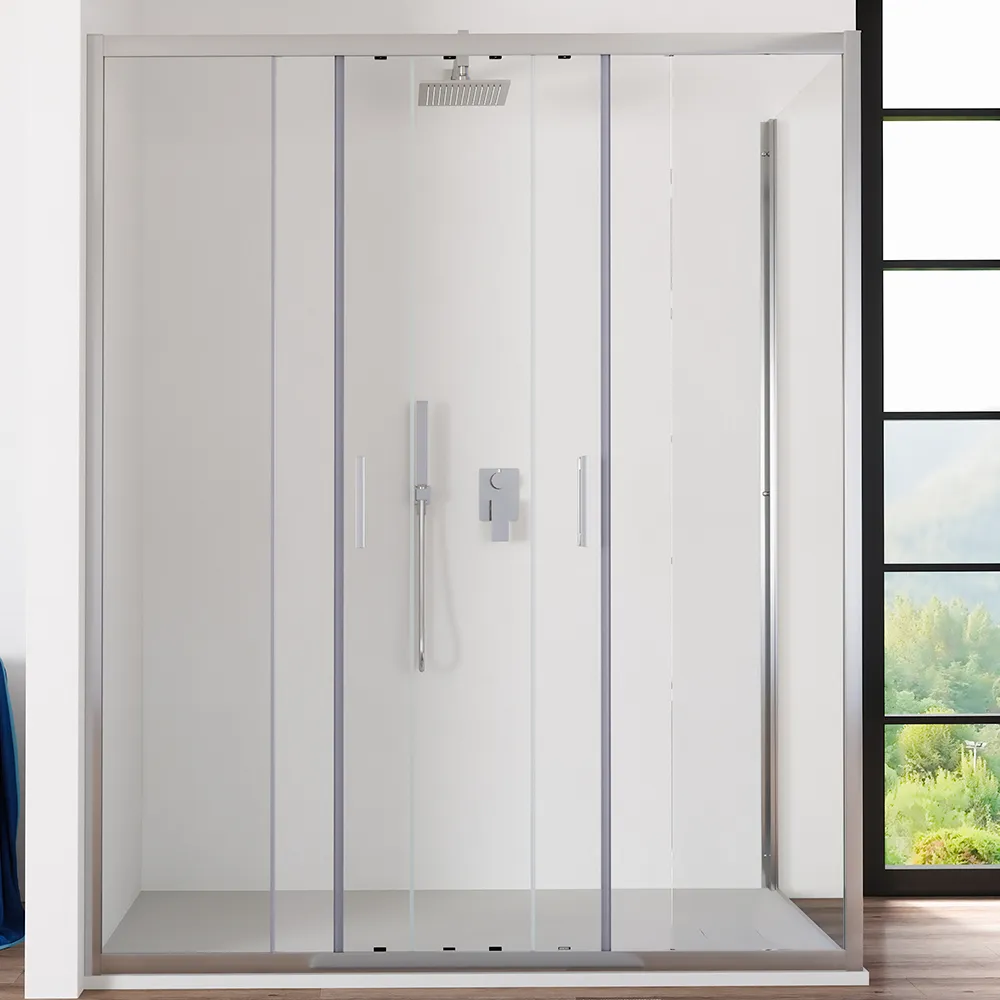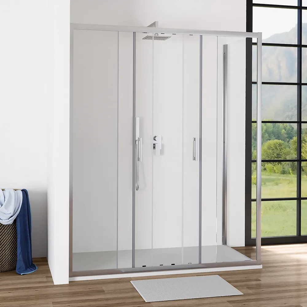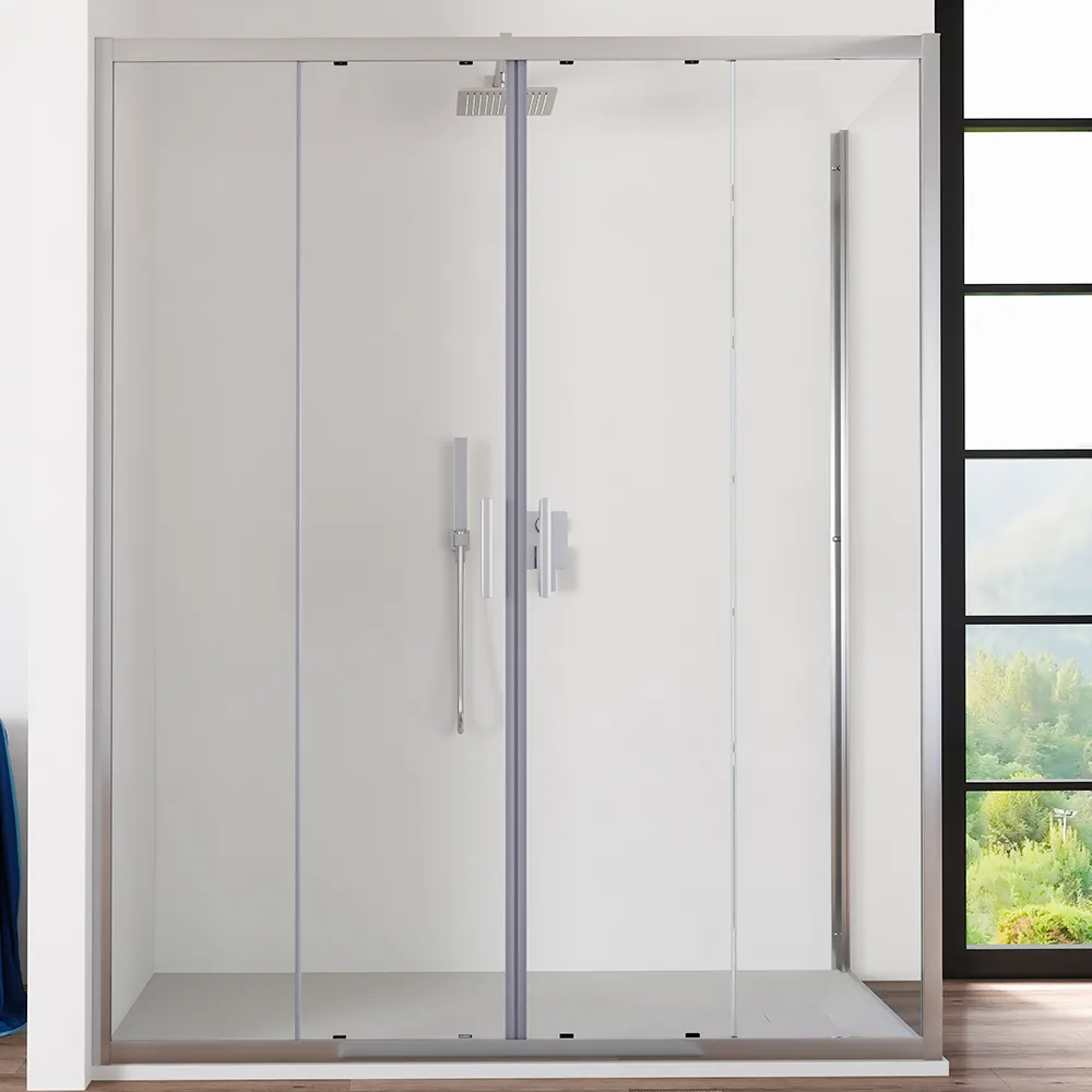 L'apertura scorrevole è una pratica soluzione per ambienti bagno dove la conformazione della stanza e la disposizione degli arredi non consentono altre tipologie di aperture. La fluidità dello scorrimento è garantita da 16 carrelli scorrevoli testati per oltre 100.000 aperture. Le ante scorrevoli sono dotate un comodo meccanismo di sgancio rapido utile a semplificare le operazioni di pulizia. Particolare attenzione è stata poi data alle finiture, infatti le cover in ABS dei carrelli sono in colore cromato, in perfetto abbinamento ai profili in alluminio.Installazione reversibile e tolleranza