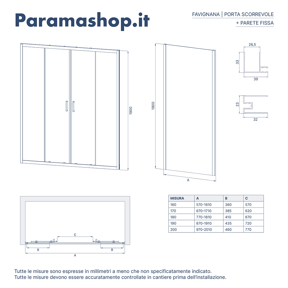 | Parete fissa: | 90cm |