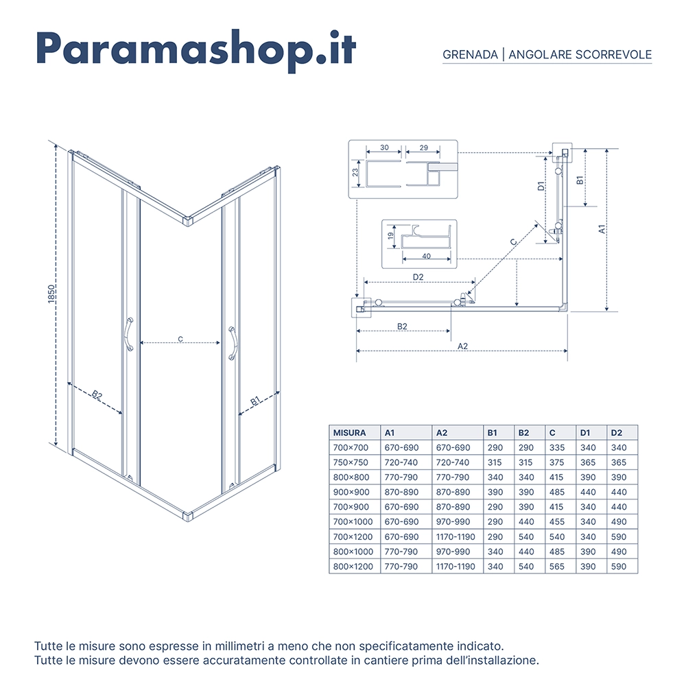 Questo box doccia angolare misura 90x90 cm ed è realizzato con vetro temperato serigrafato dello spessore di 4 mm. Le due ante scorrevoli, inoltre, sono completate da due guarnizioni magnetiche che accompagneranno la chiusura e ne garantiranno una chiusura ermetica. Allo stesso tempo, il sistema di sgancio rapido delle ante facilita la pulizia, permettendoti di mantenere il box impeccabile con un semplice gesto.