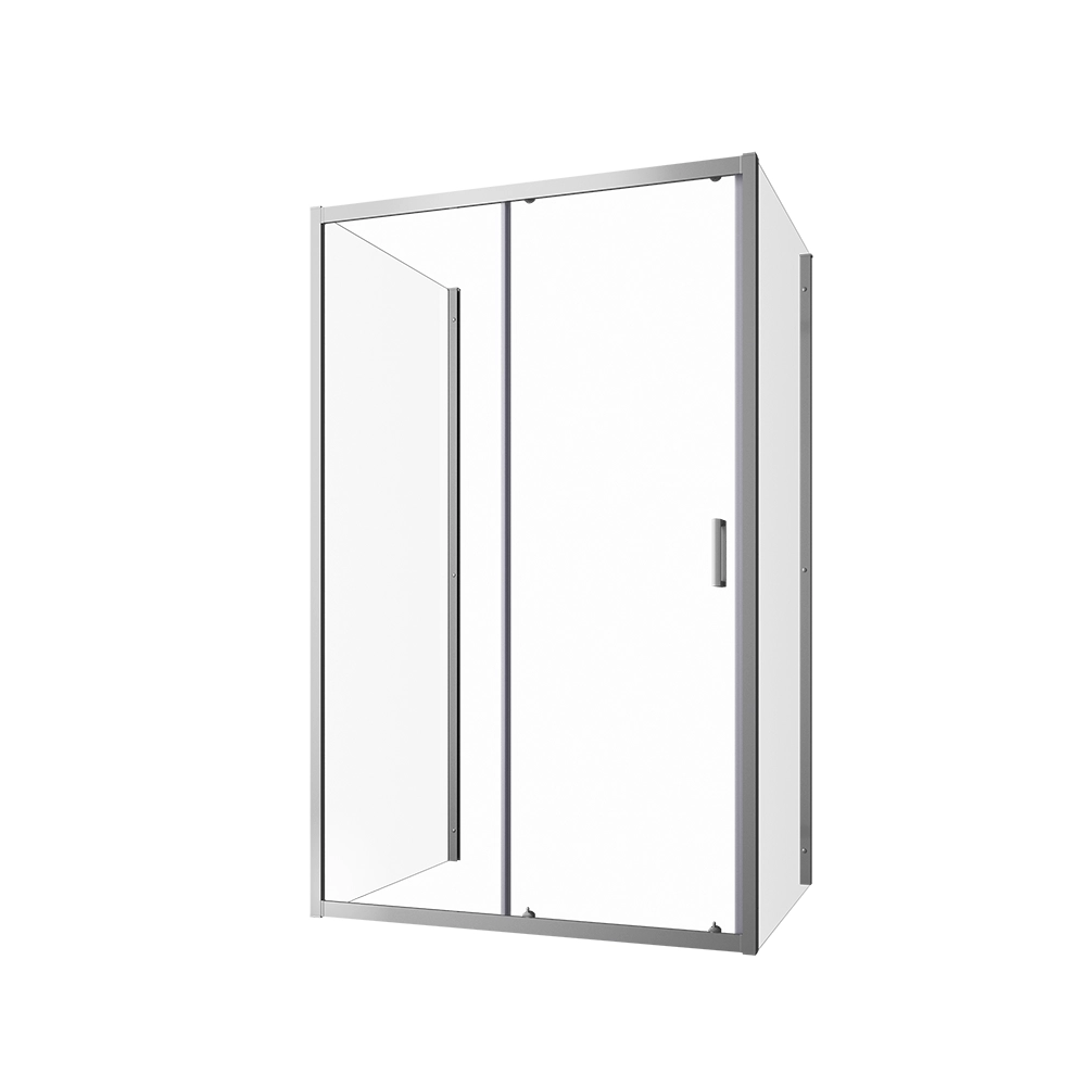 Box doccia cromato 3 lati 70x115x70cm con porta scorrevole e doppia parete fissa vetro 6mm trasparente h185cm | Madagascar