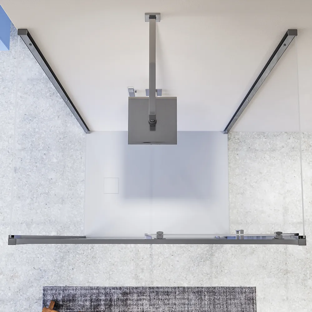 Questo modello è composto da due pareti fisse da 70 cm ciascuna e da una porta scorrevole da 115 cm, che insieme creano un ampio spazio doccia con un accesso estremamente confortevole. L'installazione reversibile ti permette di decidere in fase di montaggio se posizionare la porta scorrevole a destra o a sinistra, in base alla configurazione del tuo bagno. E per semplificare al massimo la pulizia, il box doccia è dotato di un meccanismo di sgancio rapido che ti permette di rimuovere facilmente le ante scorrevoli. Con un’altezza di 185 cm, questo box doccia rappresenta la scelta ideale per chi cerca un prodotto di alta qualità, dal design innovativo e dallo stile moderno.