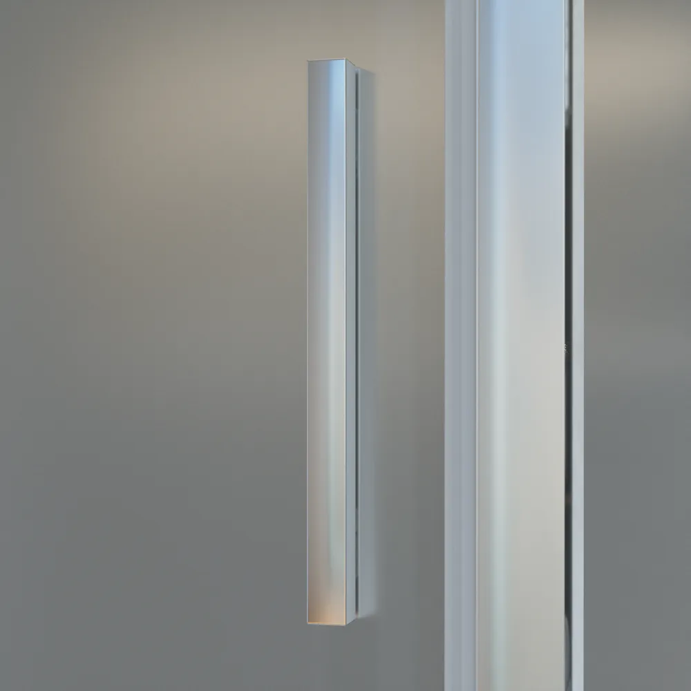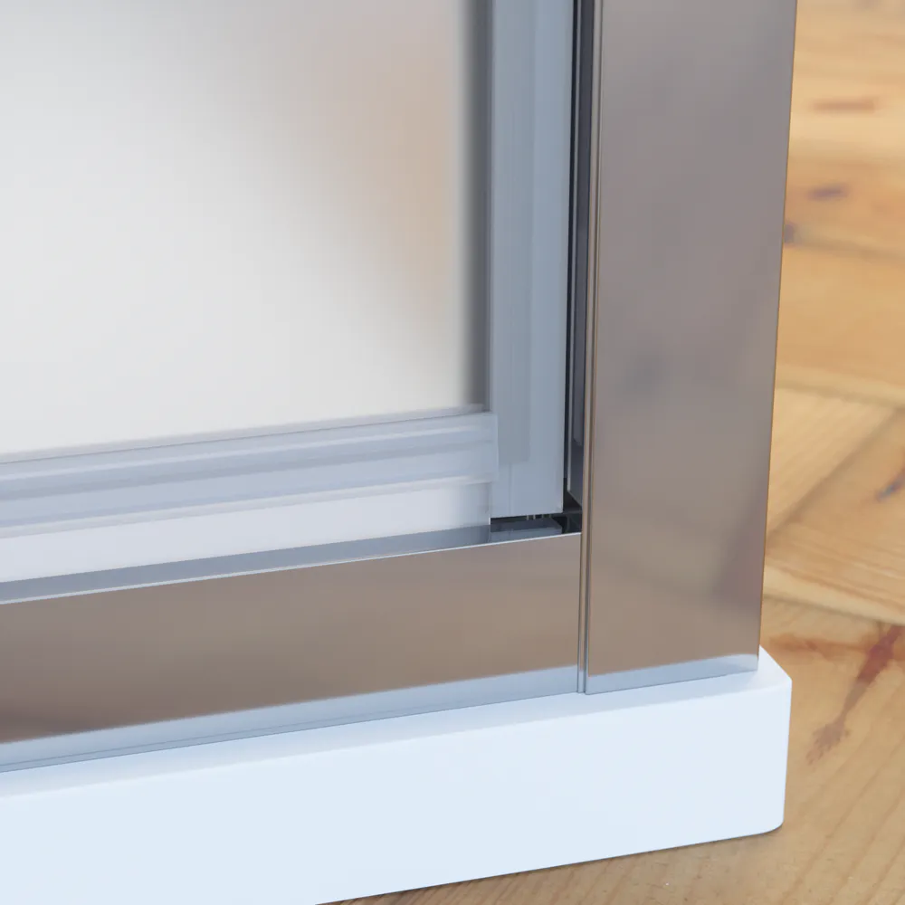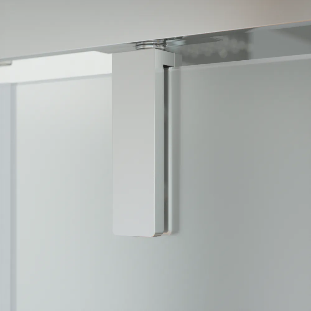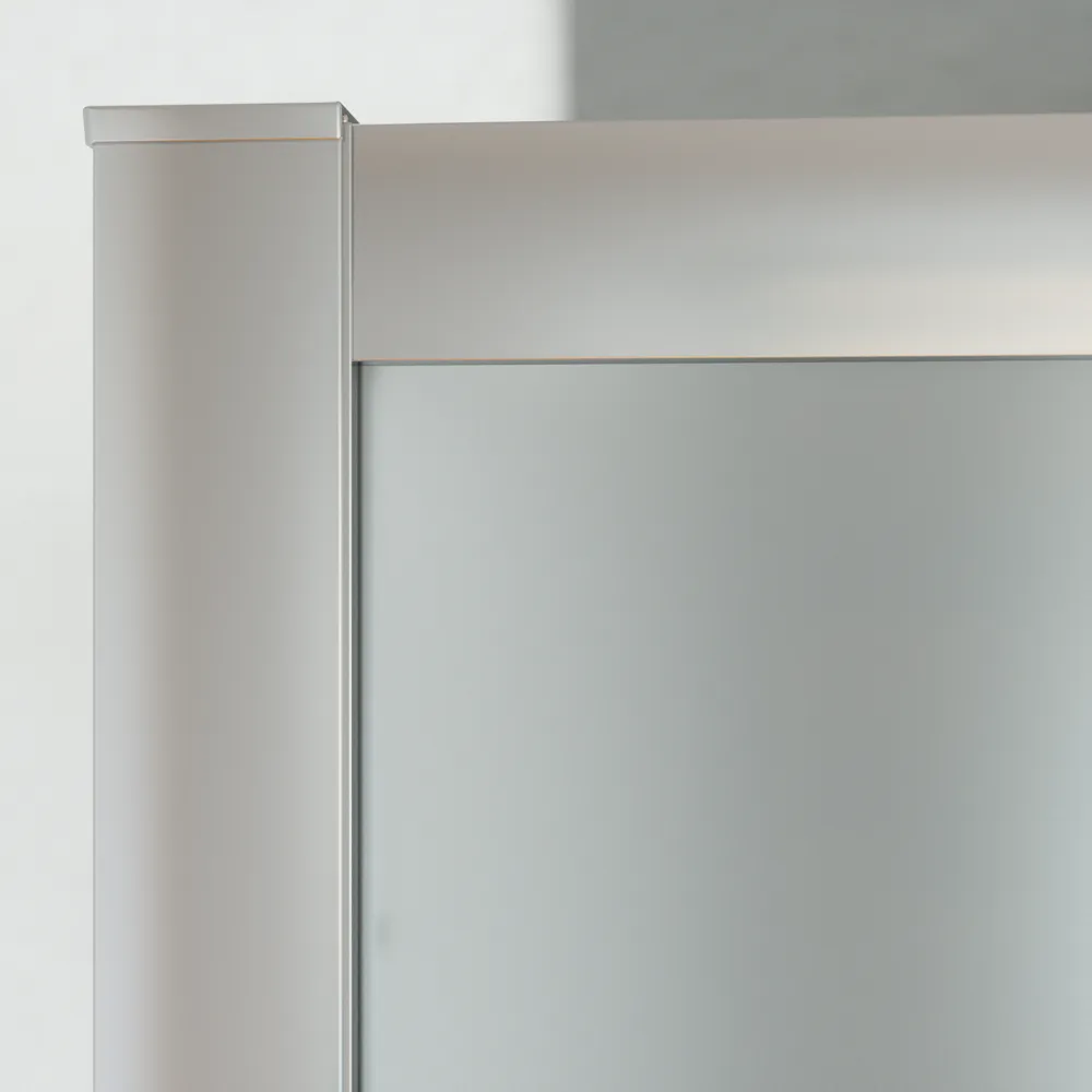 I profili in alluminio cromato conferiscono un aspetto raffinato e contemporaneo, mentre il vetro opaco da 6 mm di spessore, dotato di trattamento Easy Clean, facilita la pulizia e previene la formazione di calcare.