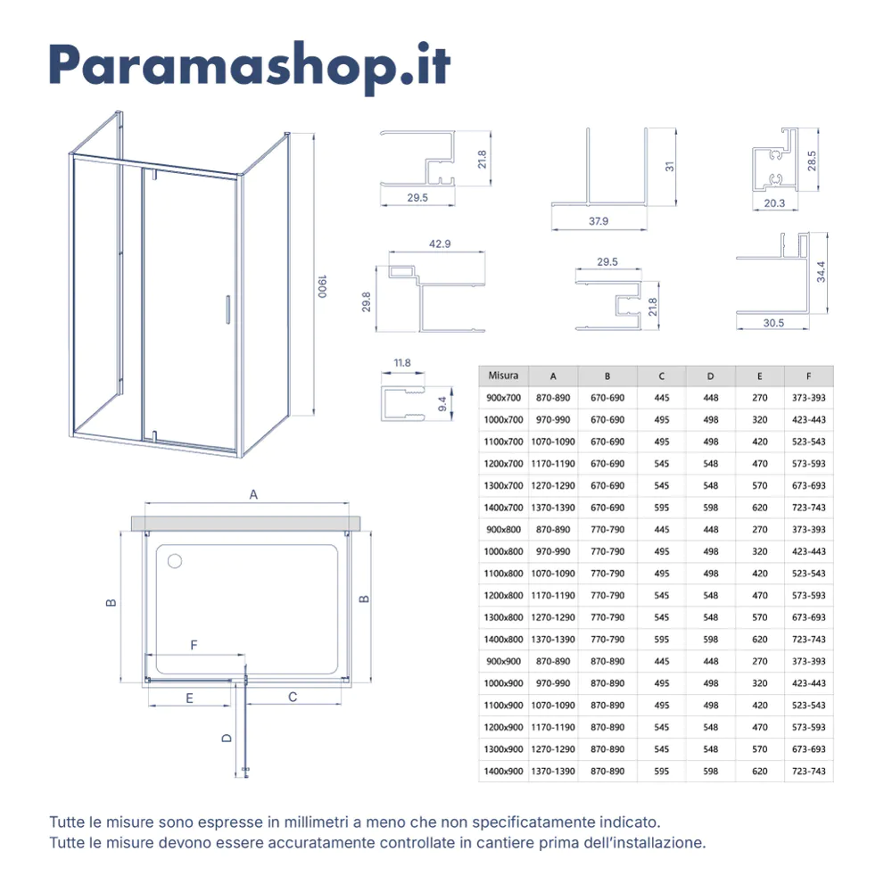 | Parete fissa: | 70cm |