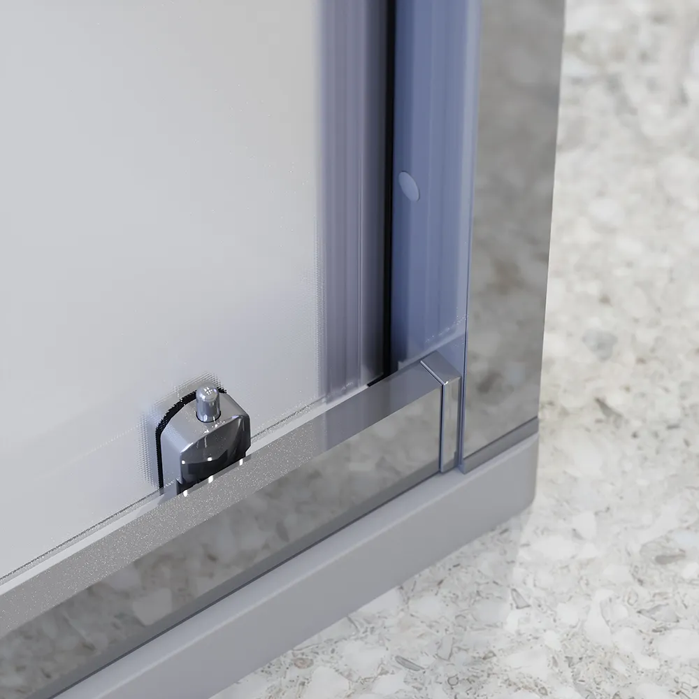 Questo modello è composto da due pareti fisse da 70 cm ciascuna e da una porta scorrevole da 125 cm, che insieme creano un ampio spazio doccia con un accesso estremamente confortevole. L'installazione reversibile ti permette di decidere in fase di montaggio se posizionare la porta scorrevole a destra o a sinistra, in base alla configurazione del tuo bagno. E per semplificare al massimo la pulizia, il box doccia è dotato di un meccanismo di sgancio rapido che ti permette di rimuovere facilmente le ante scorrevoli. Con un’altezza di 185 cm, questo box doccia rappresenta la scelta ideale per chi cerca un prodotto di alta qualità, dal design innovativo e dallo stile moderno.