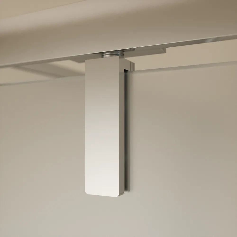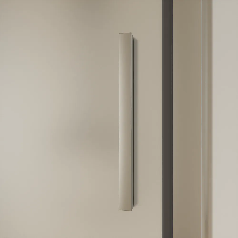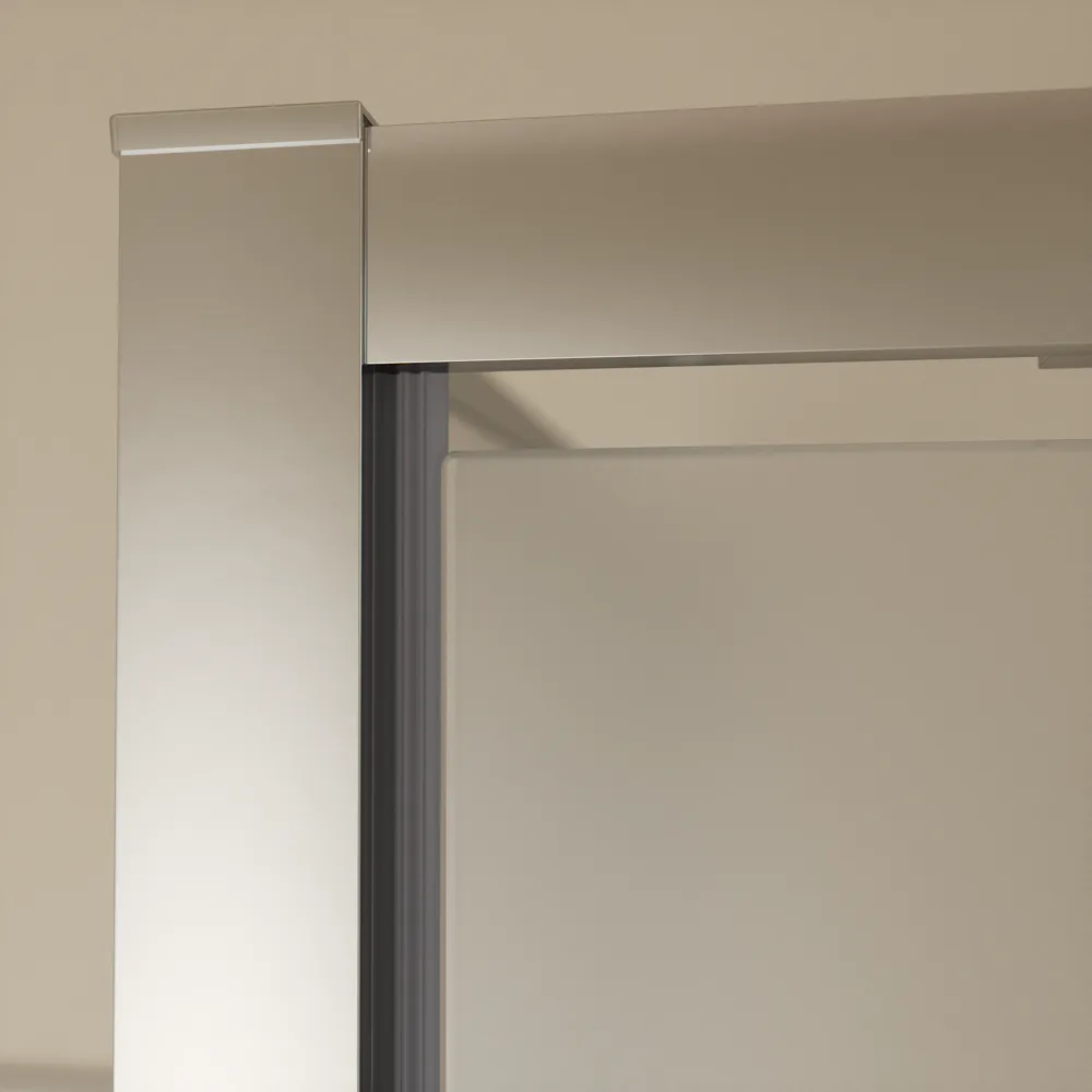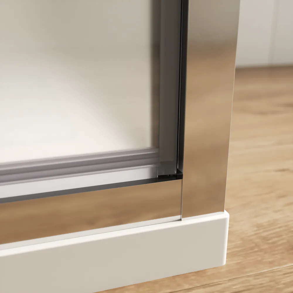 I profili in alluminio cromato conferiscono un aspetto raffinato e contemporaneo, mentre il vetro temperato opaco da 6 mm con trattamento Easy Clean facilita la pulizia e aiuta a prevenire la formazione di calcare.