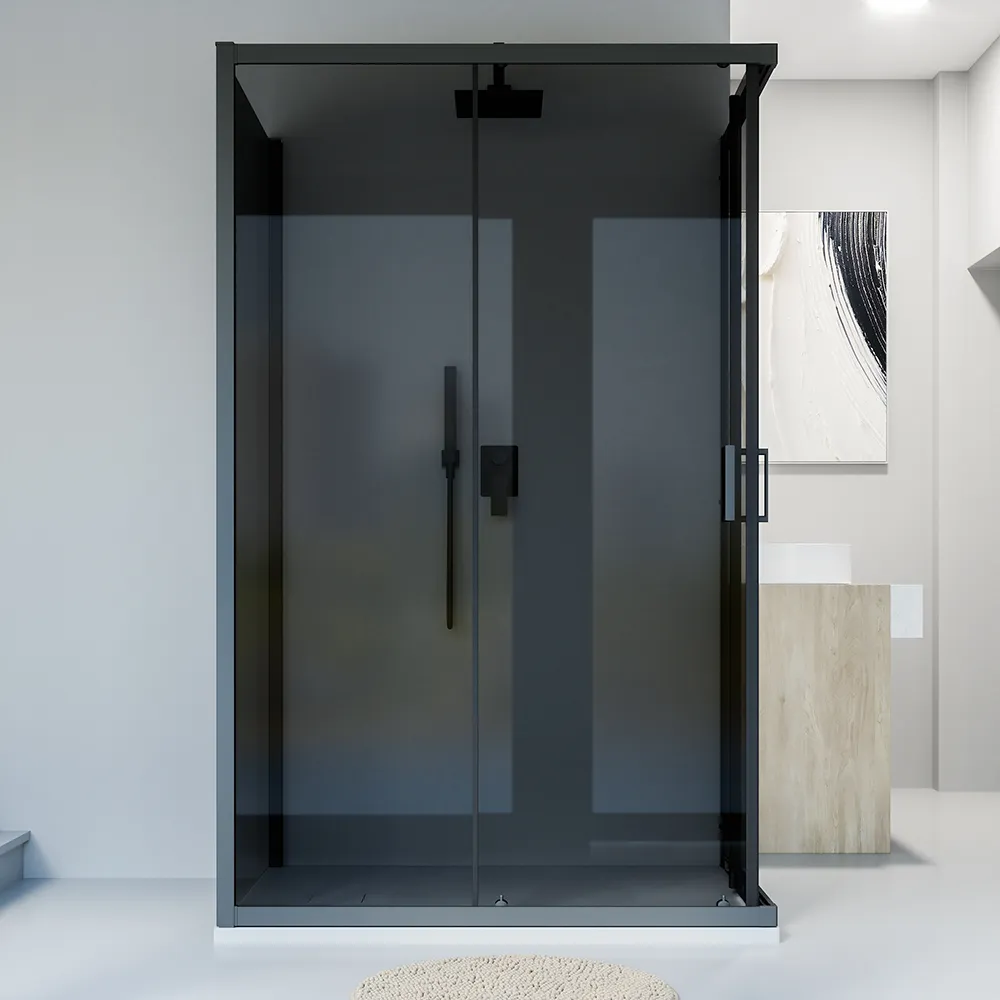 Box doccia nero opaco 3 lati 70x90x70cm con doppio scorrevole e vetro 6mm fumè h185cm | Tonga