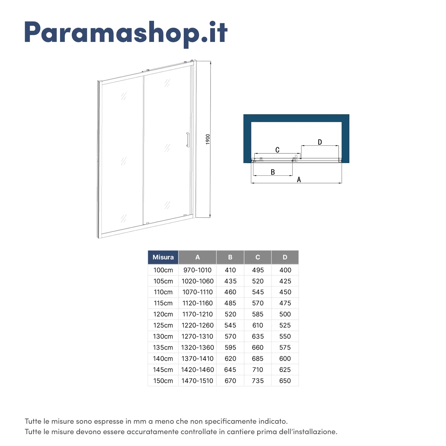 Box doccia per nicchia da 130 cm apertura scorrevole reversibile cristallo 6mm opaco h190 | Sicily
