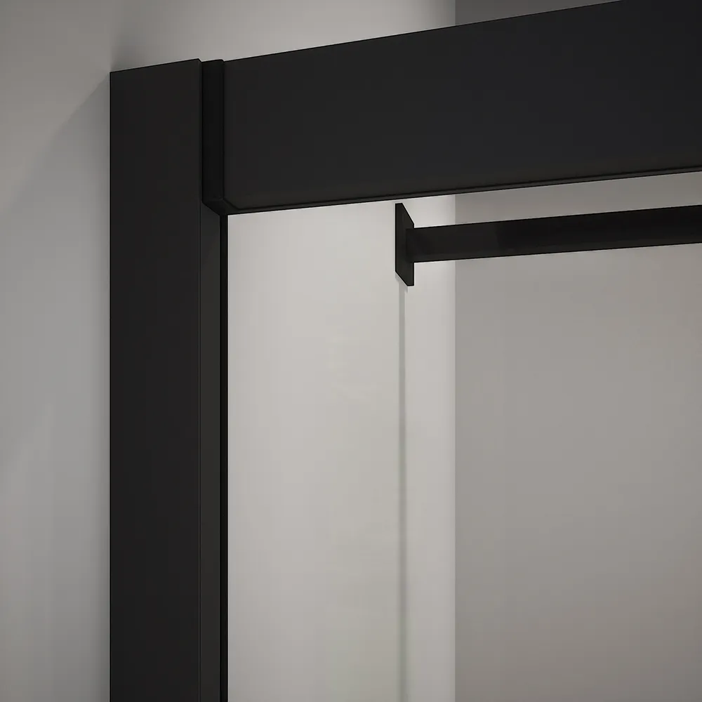 La struttura è realizzata con profili in alluminio nero, un materiale resistente e raffinato che dona un tocco di eleganza all’ambiente. La finitura nera opaca, oltre a garantire un aspetto elegante e moderno, assicura anche una maggiore durabilità nel tempo, proteggendo la superficie da umidità e corrosione.