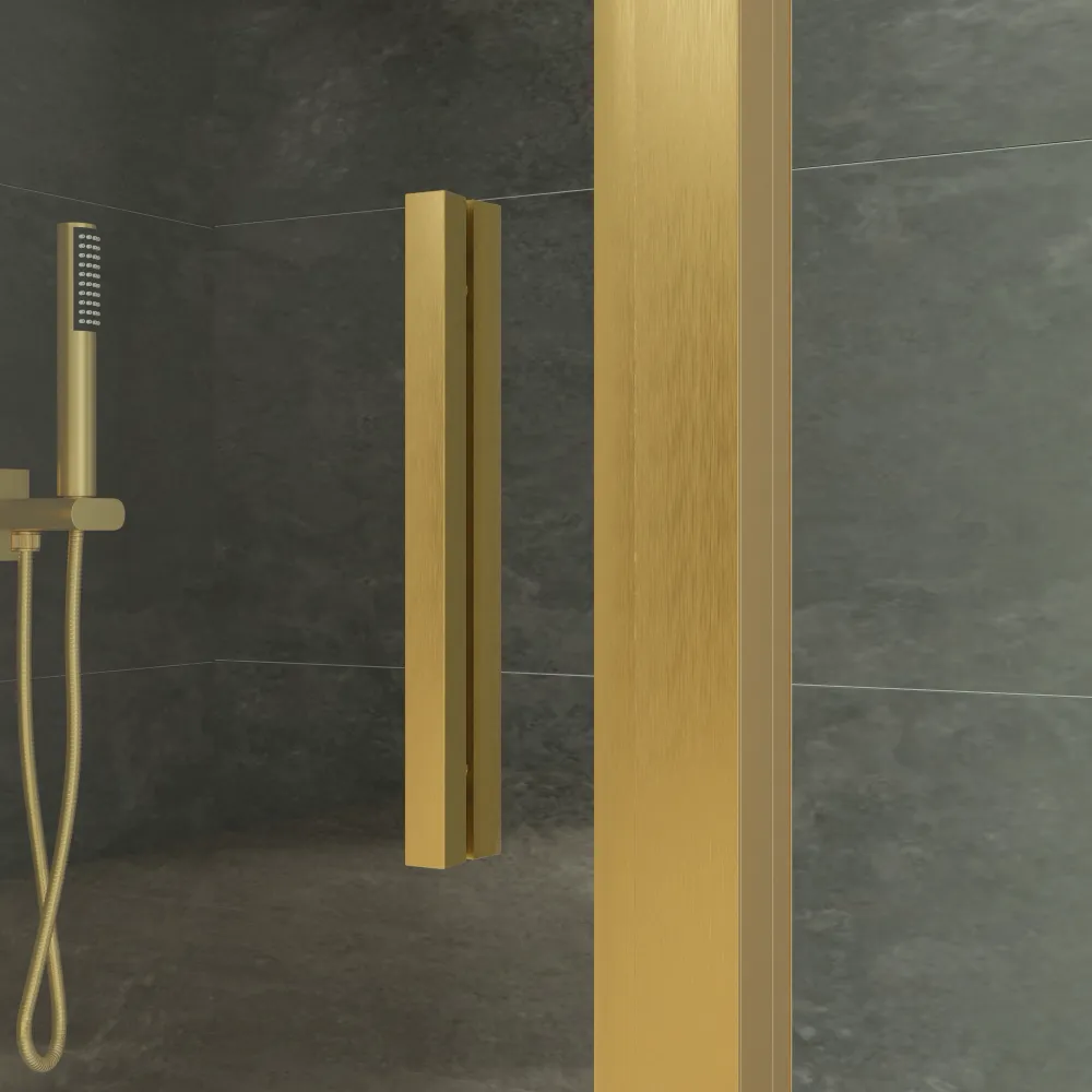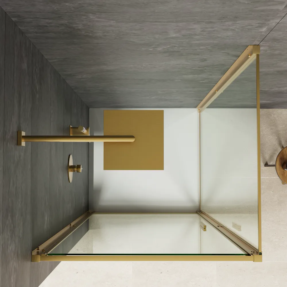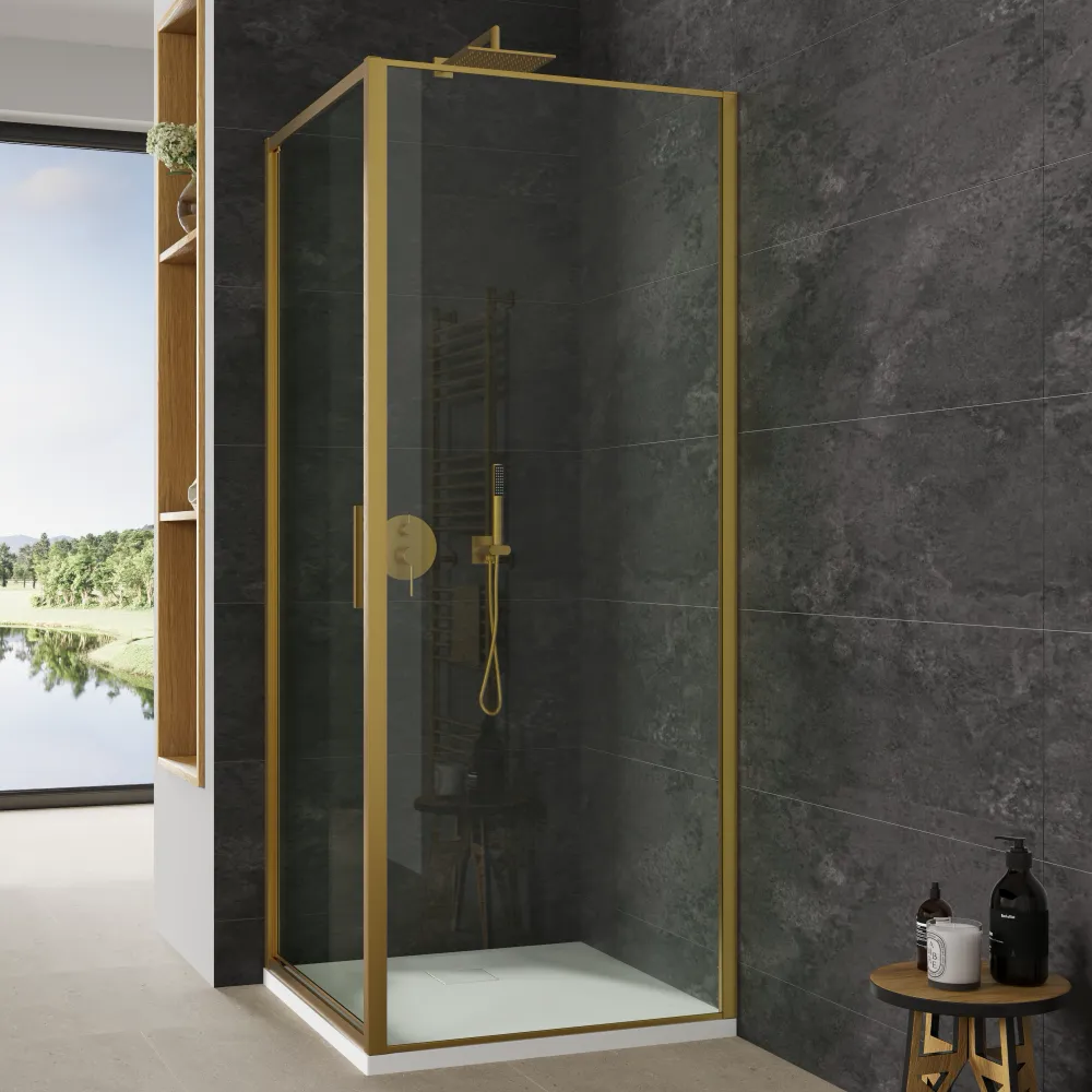 Realizzato in vetro temperato trasparente anticalcare da 6mm, il box doccia garantisce anche robustezza e sicurezza. I profili in alluminio slim oro donano un look contemporaneo al tuo bagno.