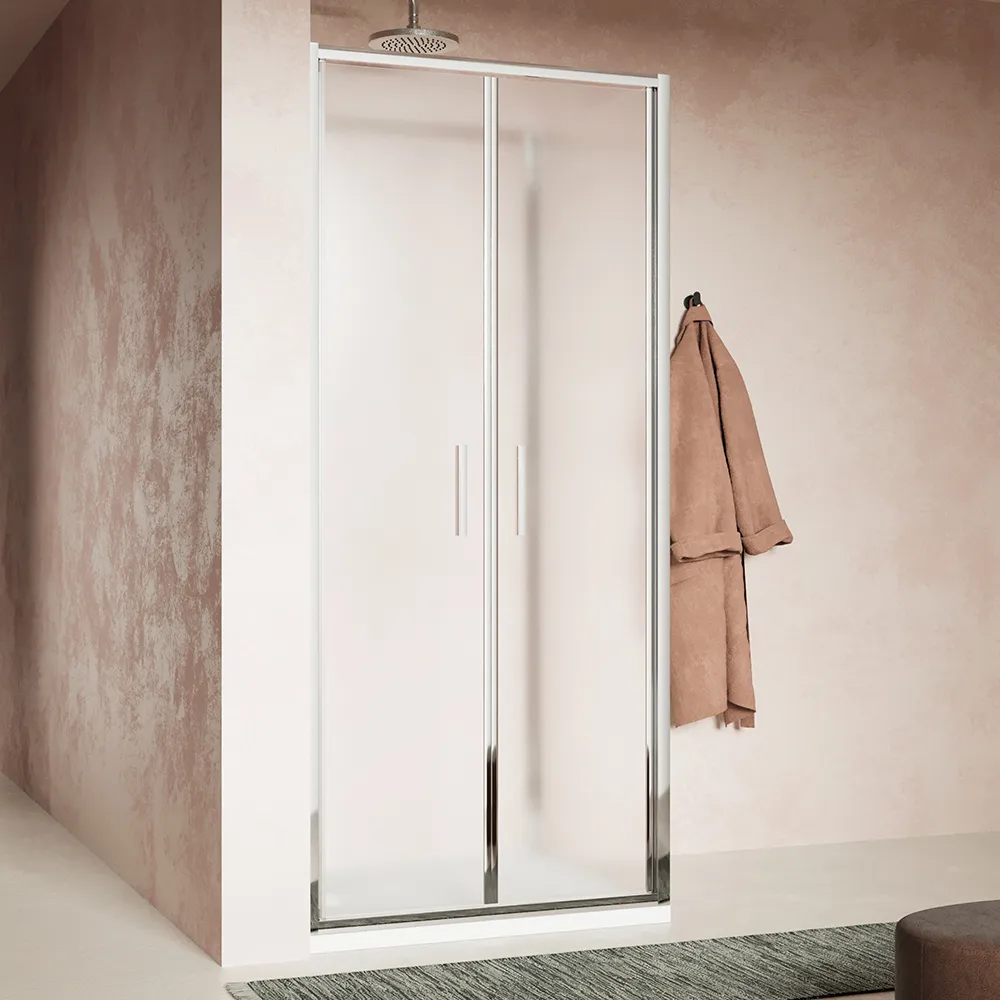 Box doccia slim 80x100cm con apertura saloon e parete fissa profili cromati e vetro 6mm opaco h190| Portofino
