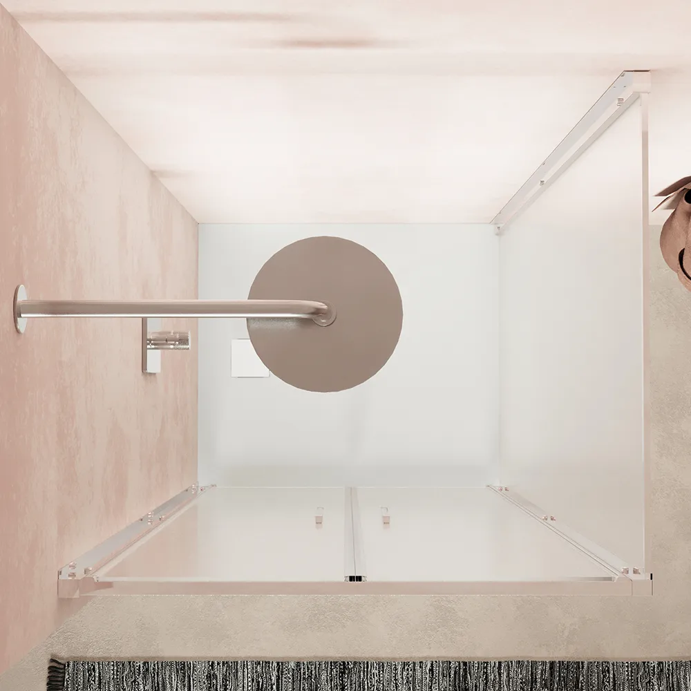 Questo modello è composto da una parete fissa da 80cm e da una porta saloon da 100cm, un'innovazione nel design dei box doccia. Questo sistema di apertura permette di aprire le porte sia verso l'esterno che verso l'interno, garantendo un accesso comodo e senza ostacoli. Con la sua ampiezza, offre una libertà di movimento eccezionale, rendendo la tua esperienza di doccia ancora più piacevole.