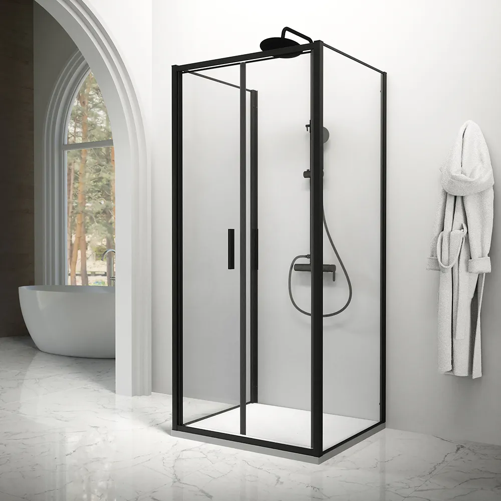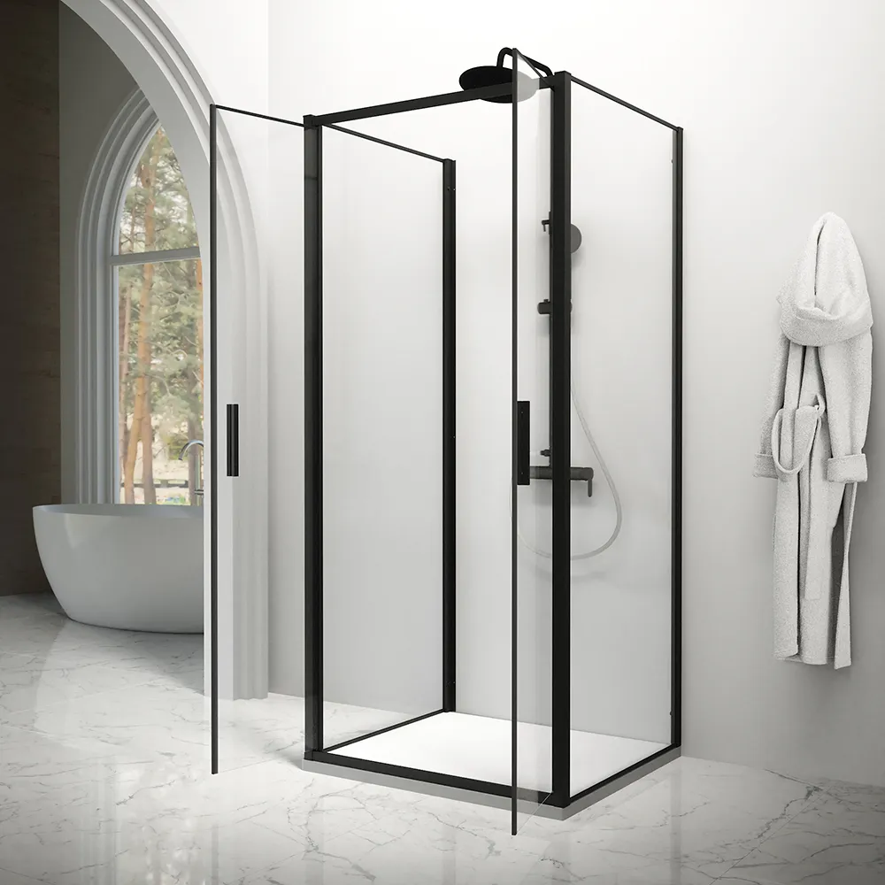 Questo modello è composto da due pareti fisse da 70cm e da una porta saloon da 100cm, un'innovazione nel design dei box doccia. Questo sistema di apertura permette di aprire la porta sia verso l'esterno che verso l'interno, garantendo un accesso comodo e senza ostacoli. Con la sua ampiezza, offre una libertà di movimento eccezionale, rendendo la tua esperienza di doccia ancora più piacevole.