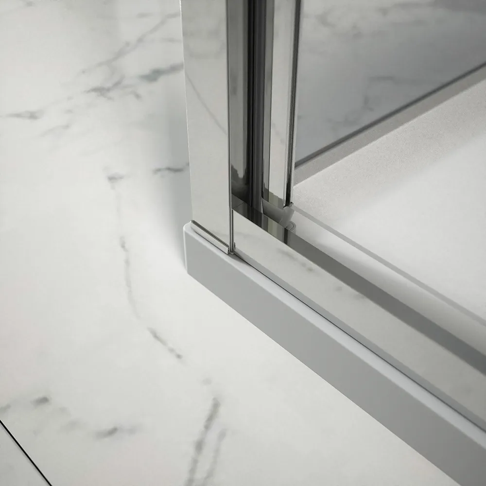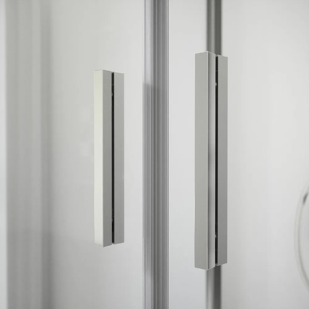 Un'ulteriore peculiarità di questo box doccia sono i profili in alluminio slim con finitura cromata, che conferiscono un aspetto elegante. Questi profili sottili creano un effetto visivo leggero, facendo sembrare il box doccia meno ingombrante e contribuendo a un design contemporaneo che si integra perfettamente con qualsiasi stile di arredamento.