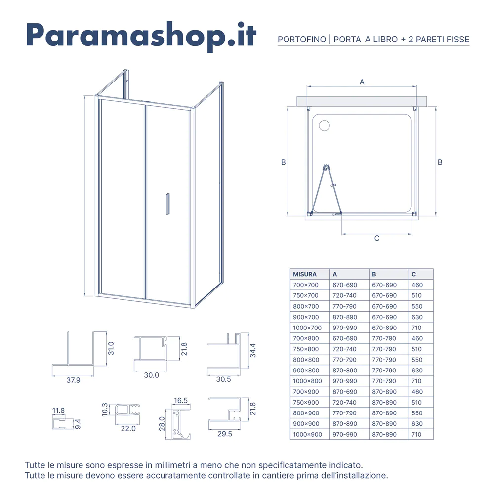 | Parete fissa: | 70cm |