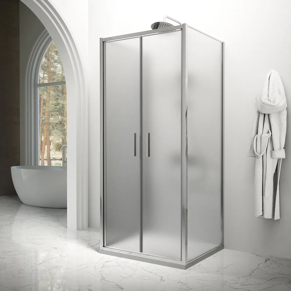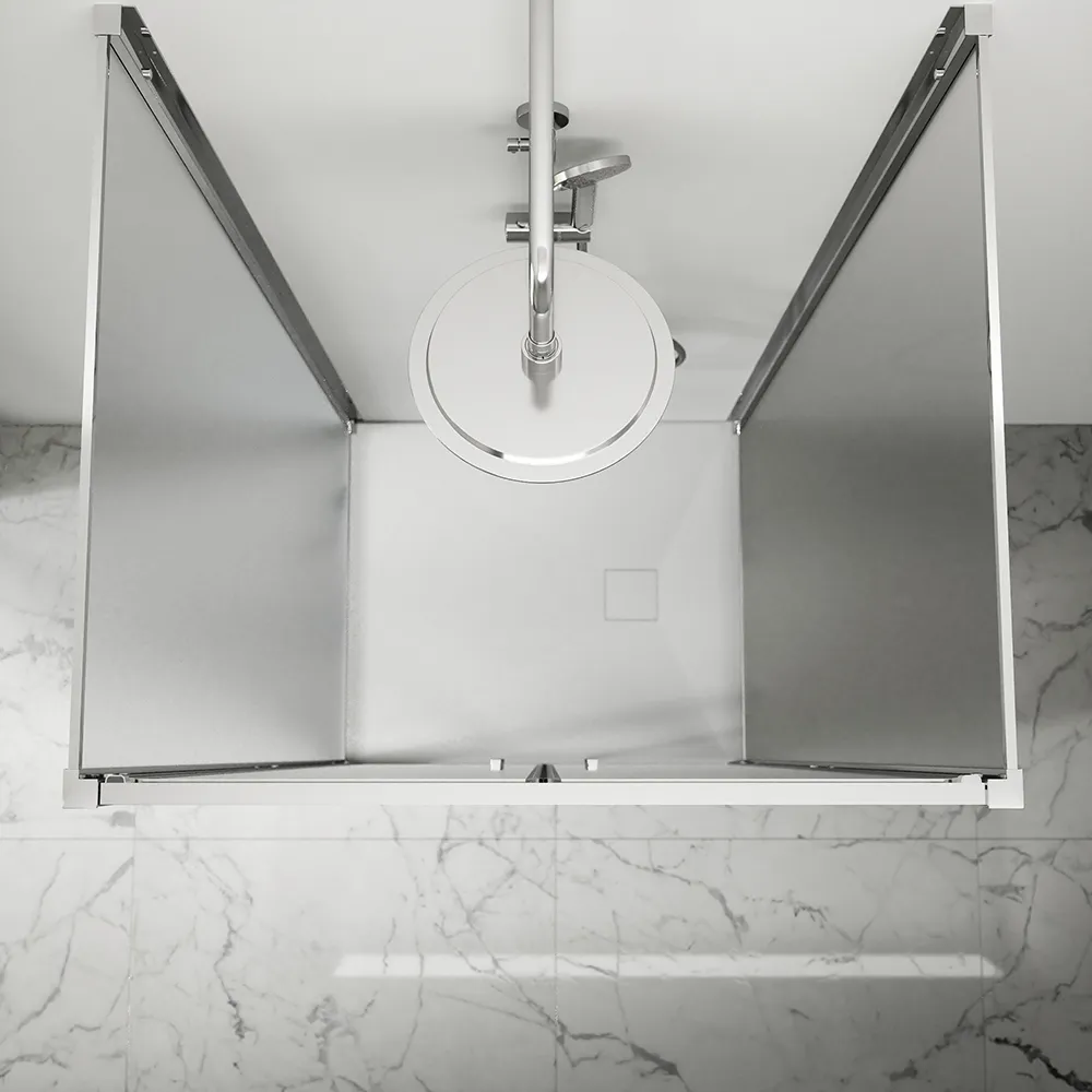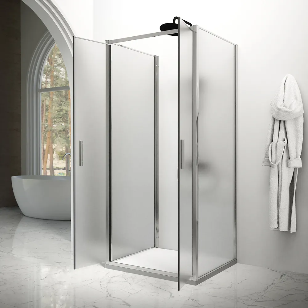 Questo modello è composto da due pareti fisse da 80cm e da una porta saloon da 80cm, un'innovazione nel design dei box doccia. Questo sistema di apertura permette di aprire la porta sia verso l'esterno che verso l'interno, garantendo un accesso comodo e senza ostacoli. Con la sua ampiezza, offre una libertà di movimento eccezionale, rendendo la tua esperienza di doccia ancora più piacevole.