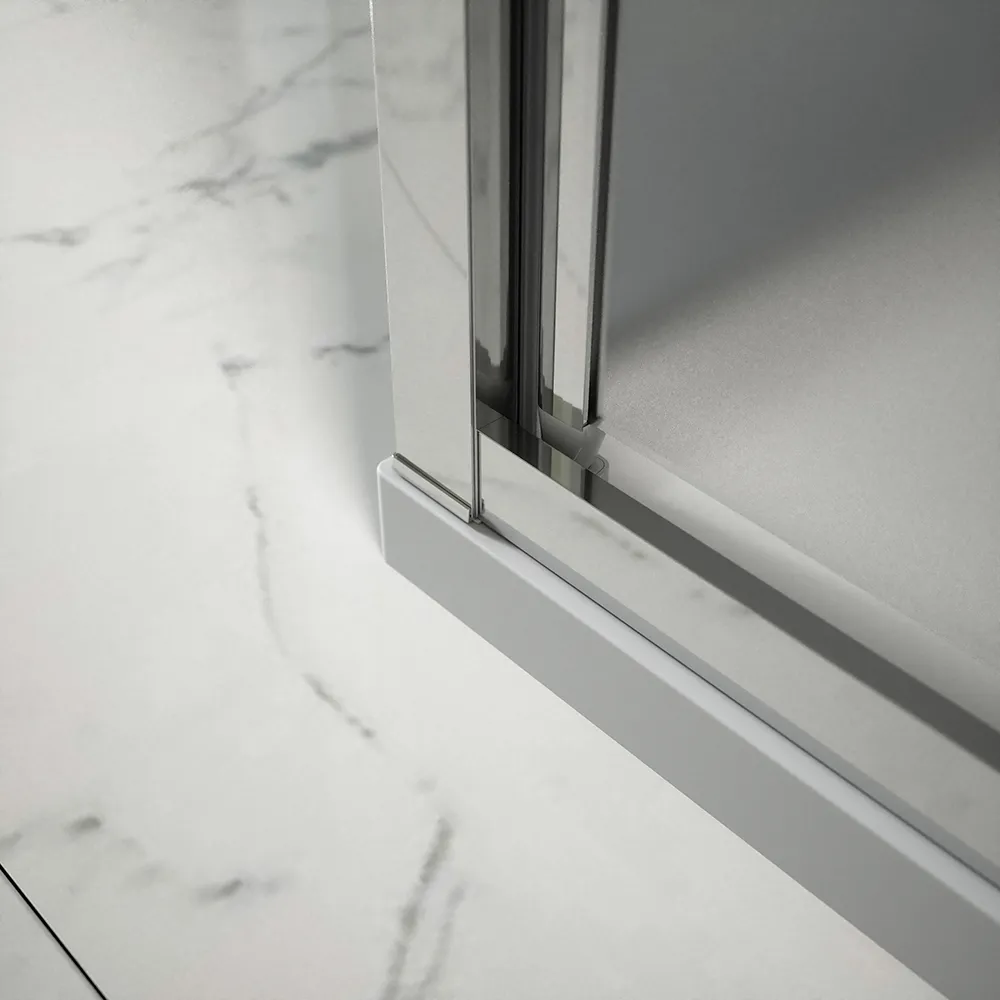 Un'ulteriore peculiarità di questo box doccia sono i profili in alluminio slim con finitura cromata, che conferiscono un aspetto elegante. Questi profili sottili creano un effetto visivo leggero, facendo sembrare il box doccia meno ingombrante e contribuendo a un design contemporaneo che si integra perfettamente con qualsiasi stile di arredamento.