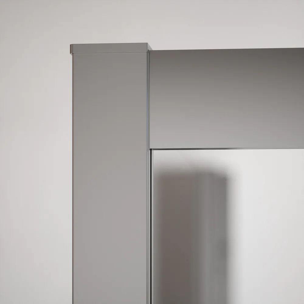 La struttura in alluminio cromato offre stabilità e resistenza, mantenendo nel tempo una brillantezza impeccabile anche in ambienti umidi. I profili sottili e lucidi donano un aspetto leggero e raffinato, perfetto per ambienti bagno moderni e luminosi.