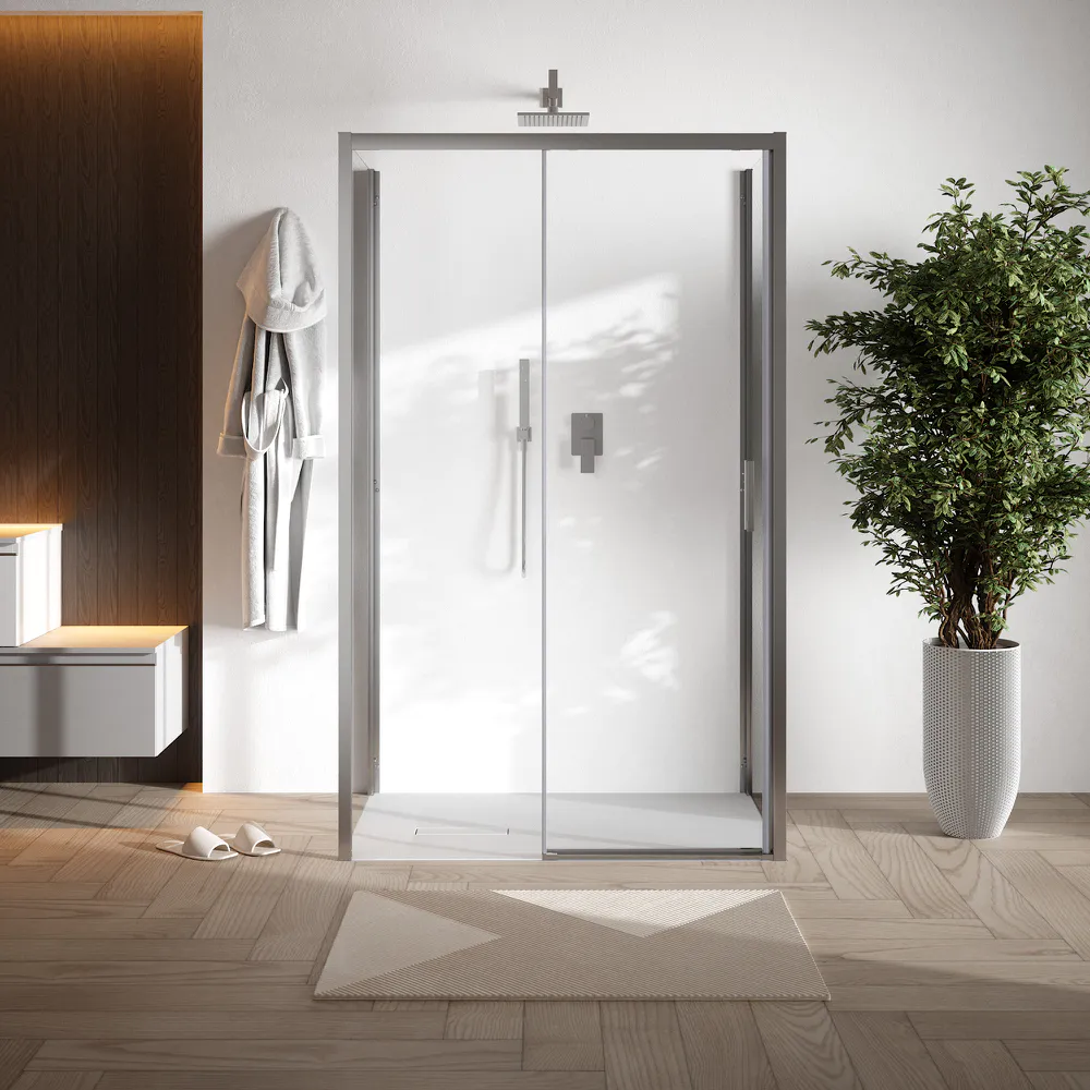La porta scorrevole permette un’apertura fluida e silenziosa, assicurando comfort e praticità d’uso anche in spazi ridotti. Il sistema di chiusura magnetica garantisce una perfetta aderenza delle ante, evitando fuoriuscite d’acqua e offrendo una tenuta affidabile.