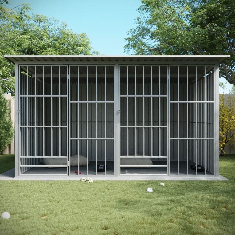 Questo robusto recinto per cani da esterno, realizzato in acciaio zincato verniciato di colore nero, offre un rifugio sicuro, spazioso e durevole per il tuo amico a quattro zampe.