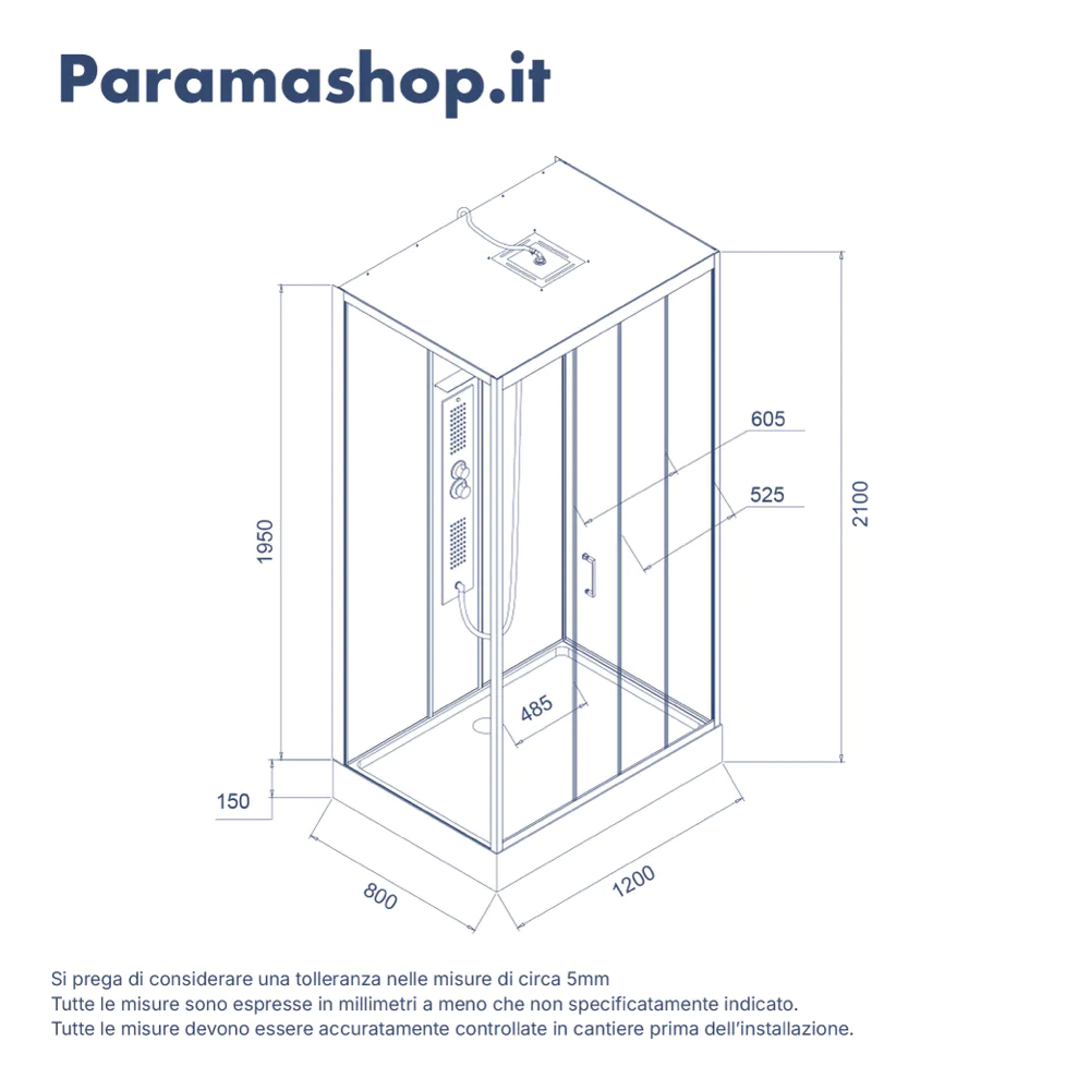 Cabina doccia idromassaggio 80x120 cm multifunzione h215cm | Ponza