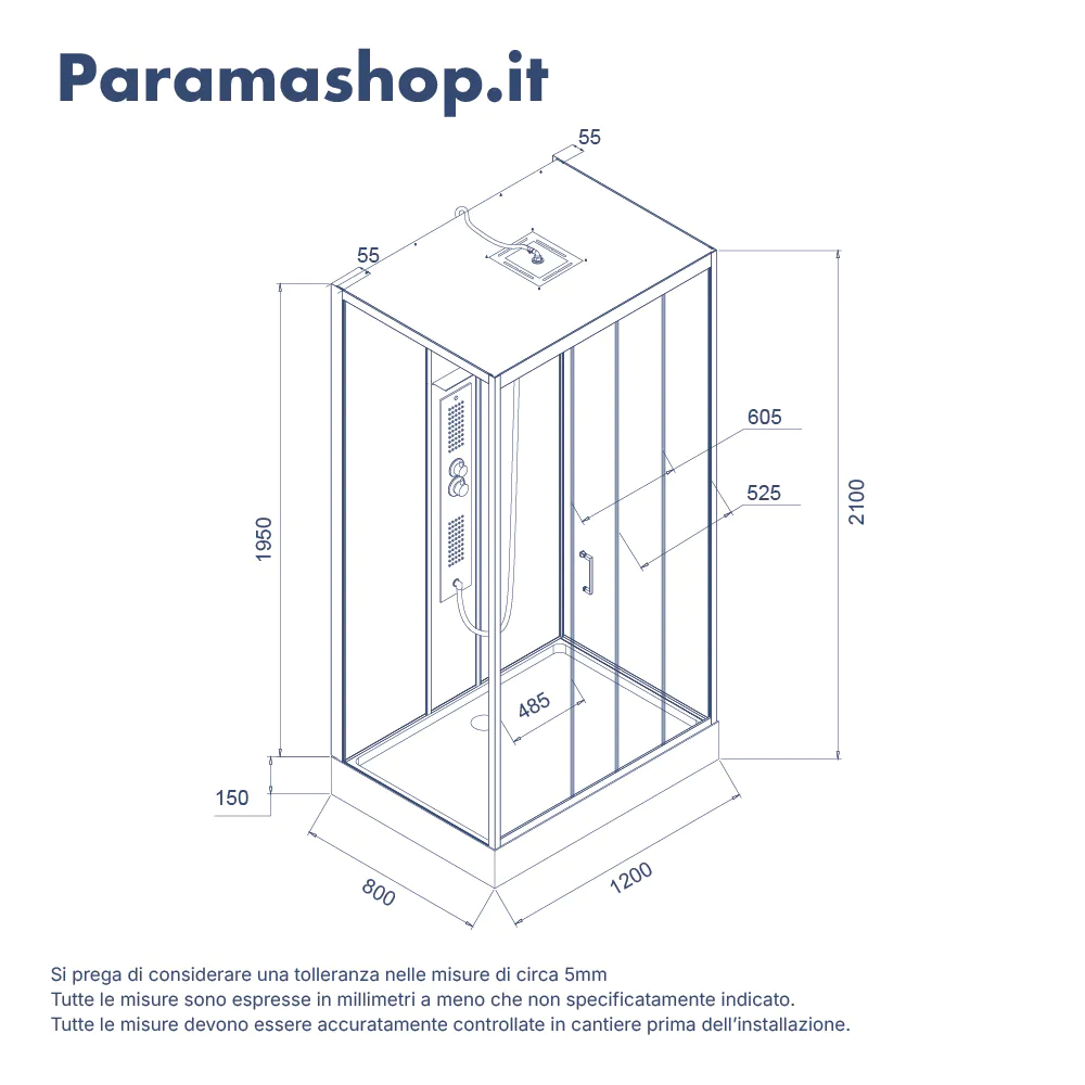 Cabina doccia idromassaggio 80x120 cm multifunzione h215cm | Ponza