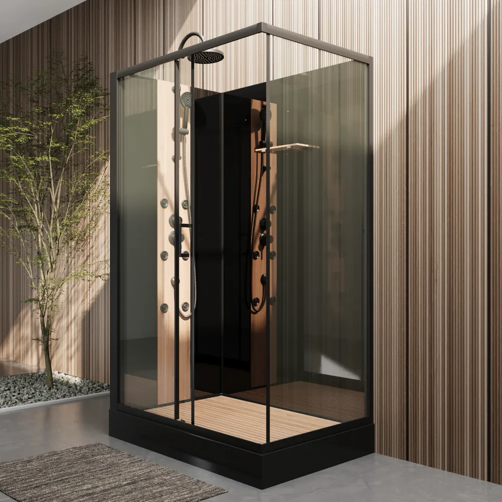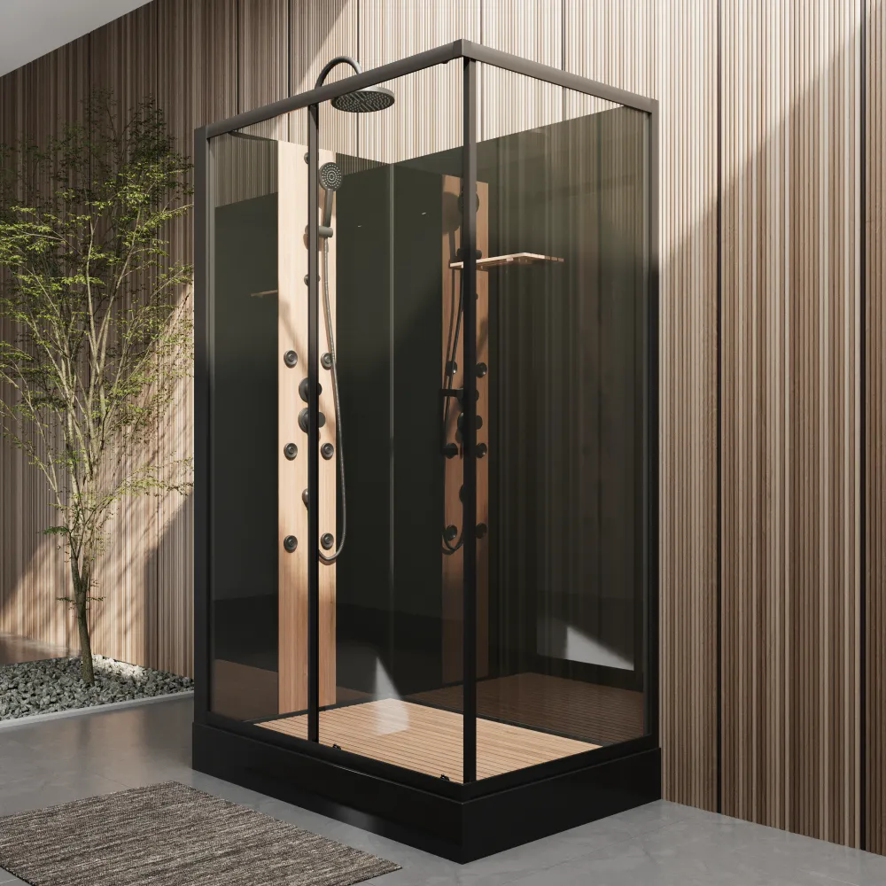 Grazie al suo design contemporaneo nero, alle funzioni idromassaggio e ai materiali ecologici in carbone di bambù, questo box doccia idromassaggio diventa una vera spa domestica. Ogni dettaglio è pensato per offrire durata, comfort e stile, trasformando la routine quotidiana in un momento di puro benessere.