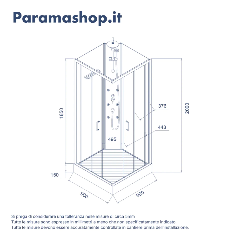 Cabina doccia idromassaggio angolare 90x90cm multifunzione h225cm | Saba