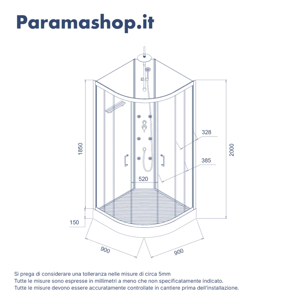 Cabina doccia idromassaggio semicircolare 90x90 cm multifunzione h225cm | Pag