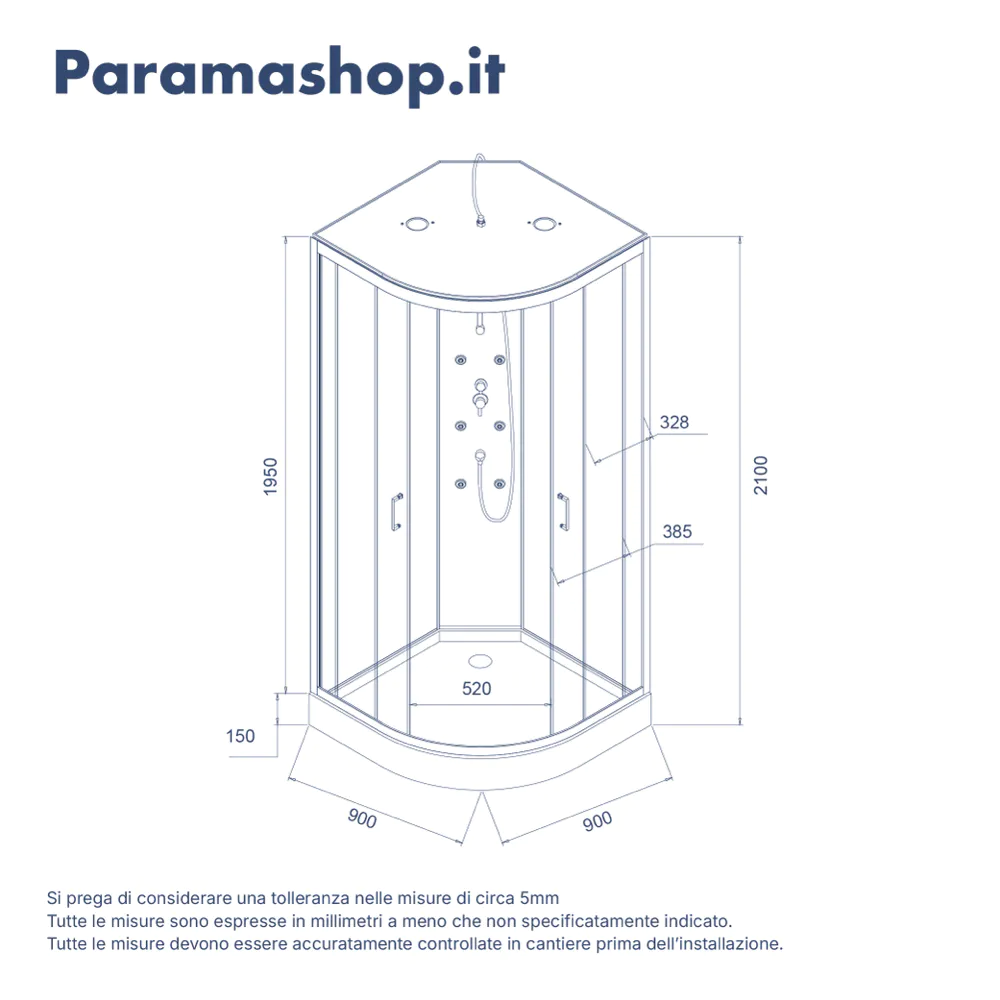 Cabina doccia idromassaggio semicircolare 90x90cm multifunzione h215cm | Sark
