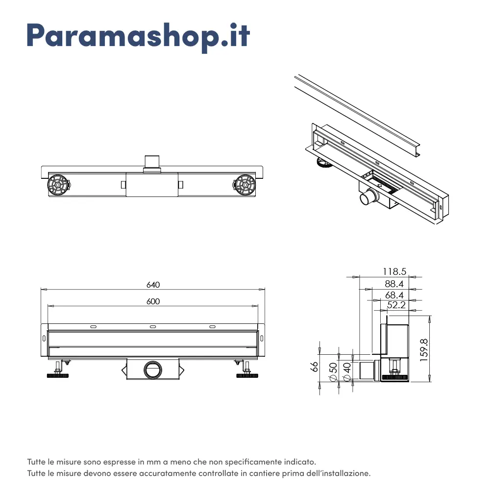 La canaletta per doccia con scarico a parete Parama da 60 cm è realizzata con materiali di alta qualità, come l'acciaio inox, e offre un'area doccia senza ostacoli nel tuo bagno. Questa soluzione non solo aggiunge eleganza al tuo bagno ma assicura anche la massima sicurezza durante la doccia.