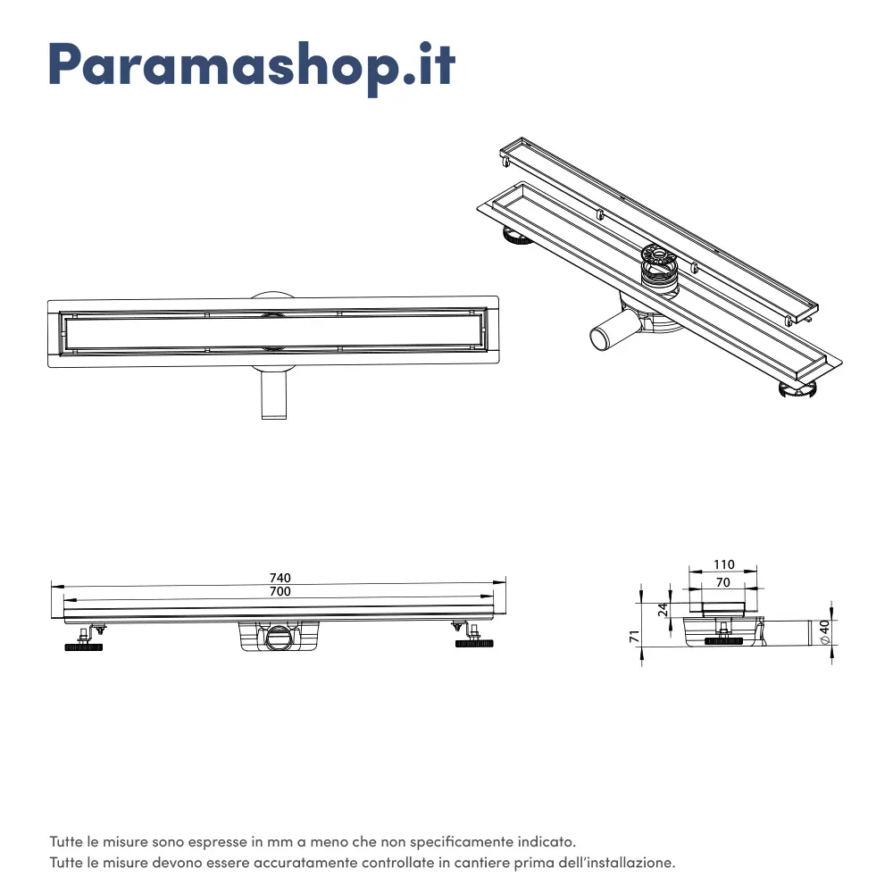 Canalina doccia in acciaio inox 70cm piastrellabile