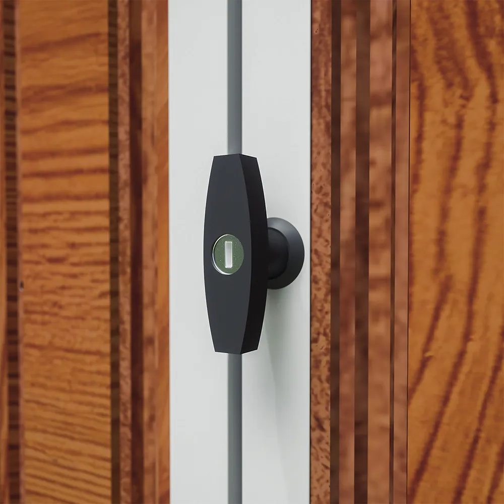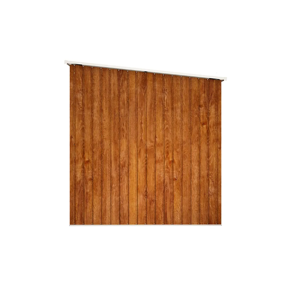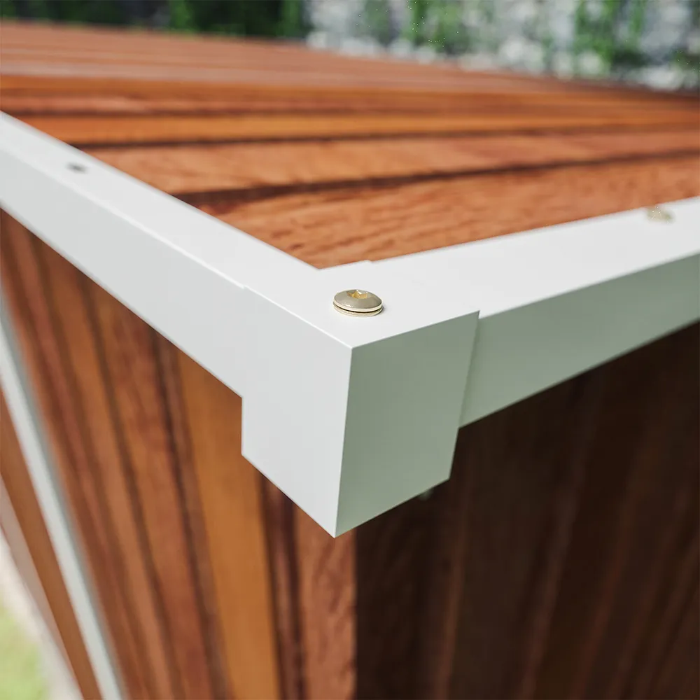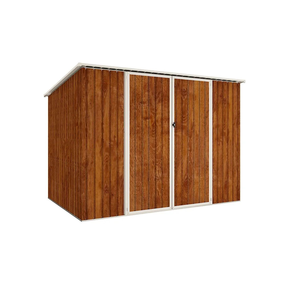 La struttura portante è costruita con acciaio zincato da 0,7 mm di spessore, che conferisce alla casetta una solidità eccezionale. Le altre componenti, come i pannelli laterali e il tetto, sono realizzati con acciaio zincato da 0,5 mm, per garantire stabilità e resistenza nel tempo. I pannelli esterni sono realizzati in acciaio zincato a caldo da 0,32mm con una finitura effetto legno, che non solo offre una protezione efficace contro la corrosione, ma conferisce anche un aspetto naturale alla casetta. La doppia porta a battente, che misura 1.42m in larghezza, consente un facile accesso e il deposito di oggetti più voluminosi ed ingombranti.