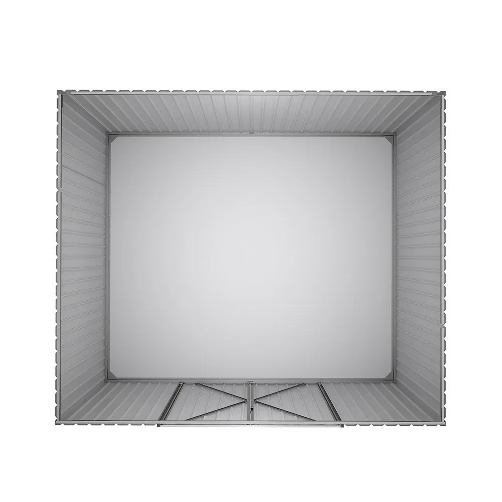 Le dimensioni esterne del box sono di 3.21m di lunghezza, 2.77m di larghezza e 2.17m di altezza, offrendo uno spazio ampio e funzionale. Con una superficie utile di 8,90m², la casetta è perfetta per soddisfare le tue necessità di stoccaggio senza occupare troppo spazio nel giardino.
