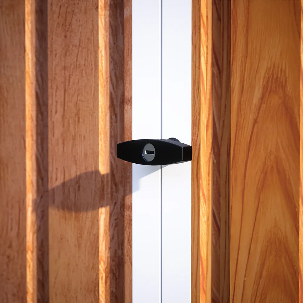 La casetta è dotata di un tetto spiovente, che favorisce il deflusso dell’acqua piovana, evitando ristagni e migliorando la durata nel tempo della struttura. Inoltre, sono presenti quattro prese d'aria (due anteriori e due posteriori), che permettono una costante circolazione dell'aria e contribuiscono a mantenere l'ambiente asciutto e ben ventilato, prevenendo in questo modo l'accumulo di umidità. La doppia porta a battente, che misura 1.42m in larghezza, consente un facile accesso e il deposito di oggetti più voluminosi ed ingombranti.