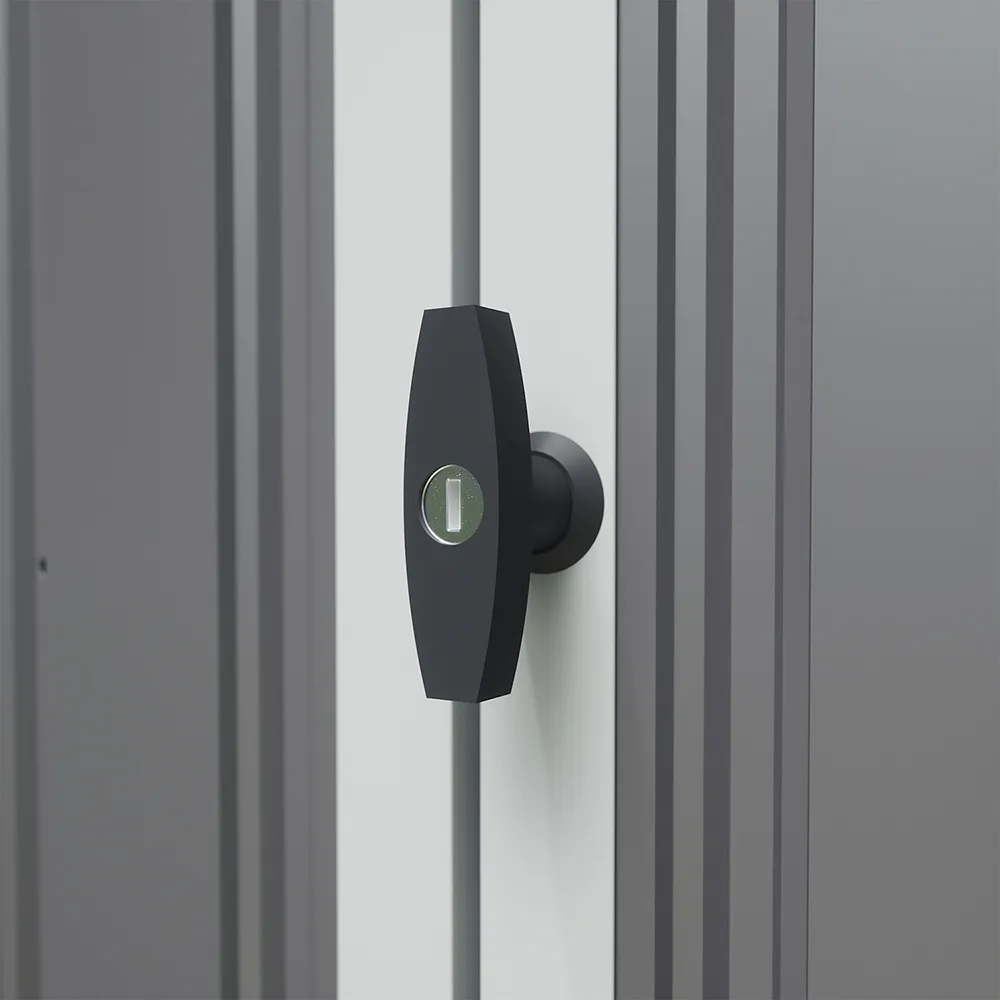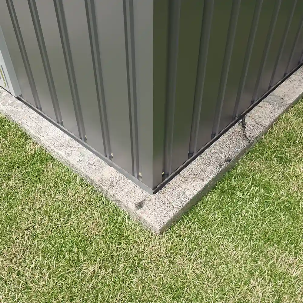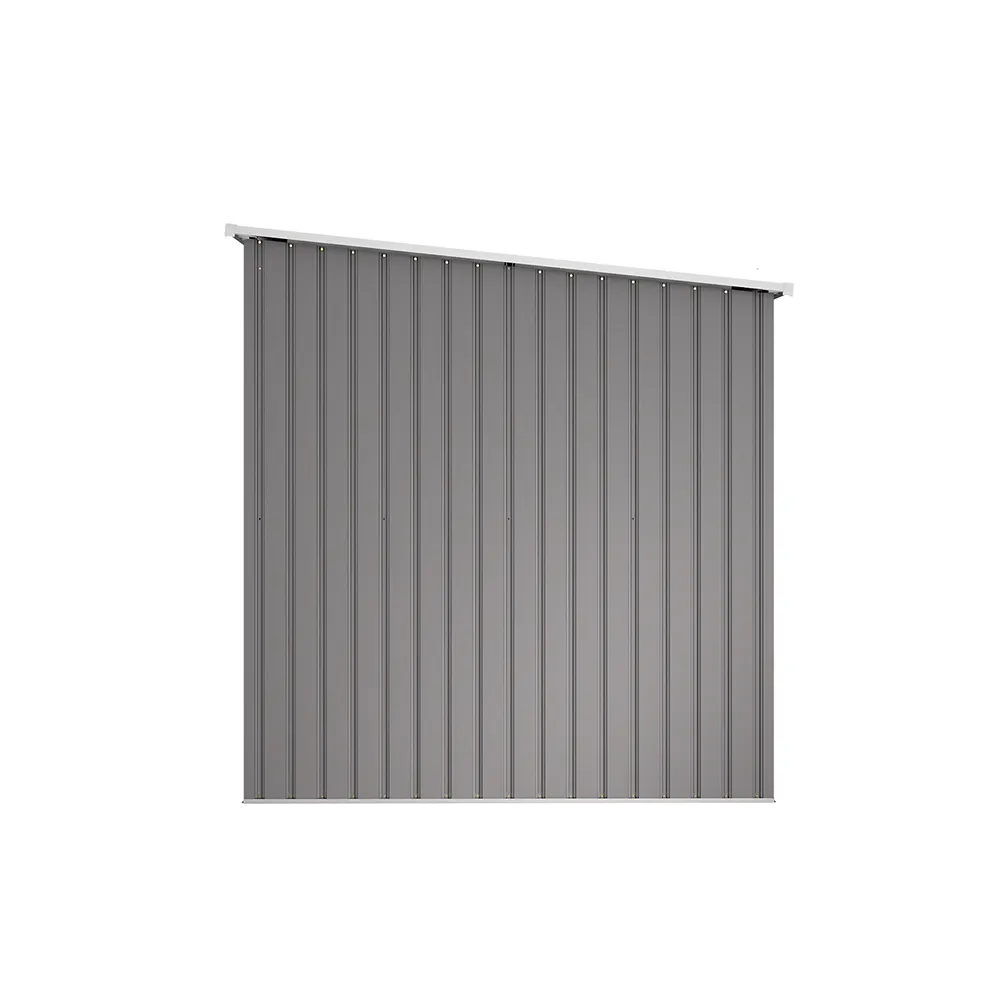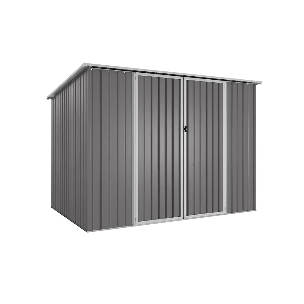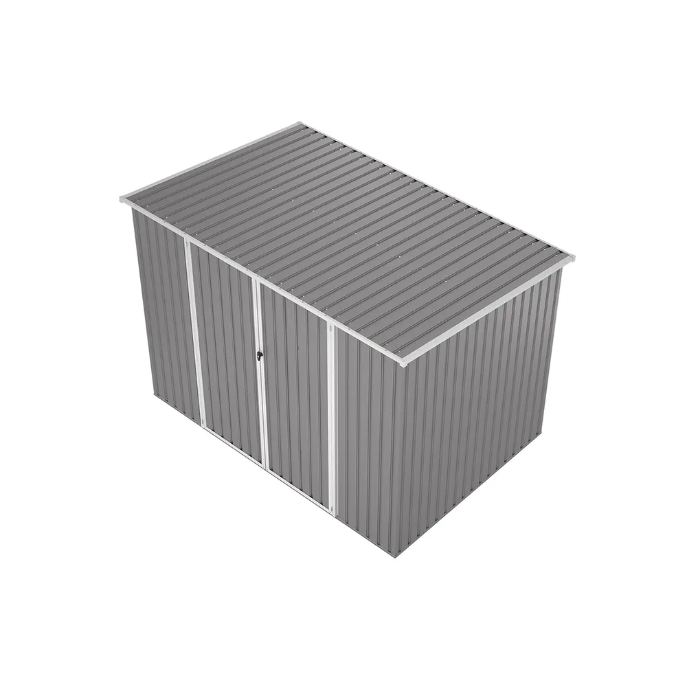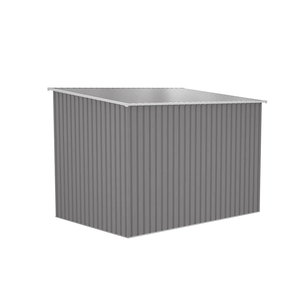 La struttura portante è costruita con acciaio zincato da 0,7 mm di spessore, che conferisce alla casetta una solidità eccezionale. Le altre componenti, come i pannelli laterali e il tetto, sono realizzati con acciaio zincato da 0,5 mm, per garantire stabilità e resistenza nel tempo. I pannelli esterni sono realizzati in acciaio zincato a caldo da 0,32mm con una finitura grigia, che non solo offre una protezione efficace contro la corrosione, ma conferisce anche un aspetto moderno ed elegante alla casetta. La doppia porta a battente, che misura 1.42m in larghezza, consente un facile accesso e il deposito di oggetti più voluminosi ed ingombranti.