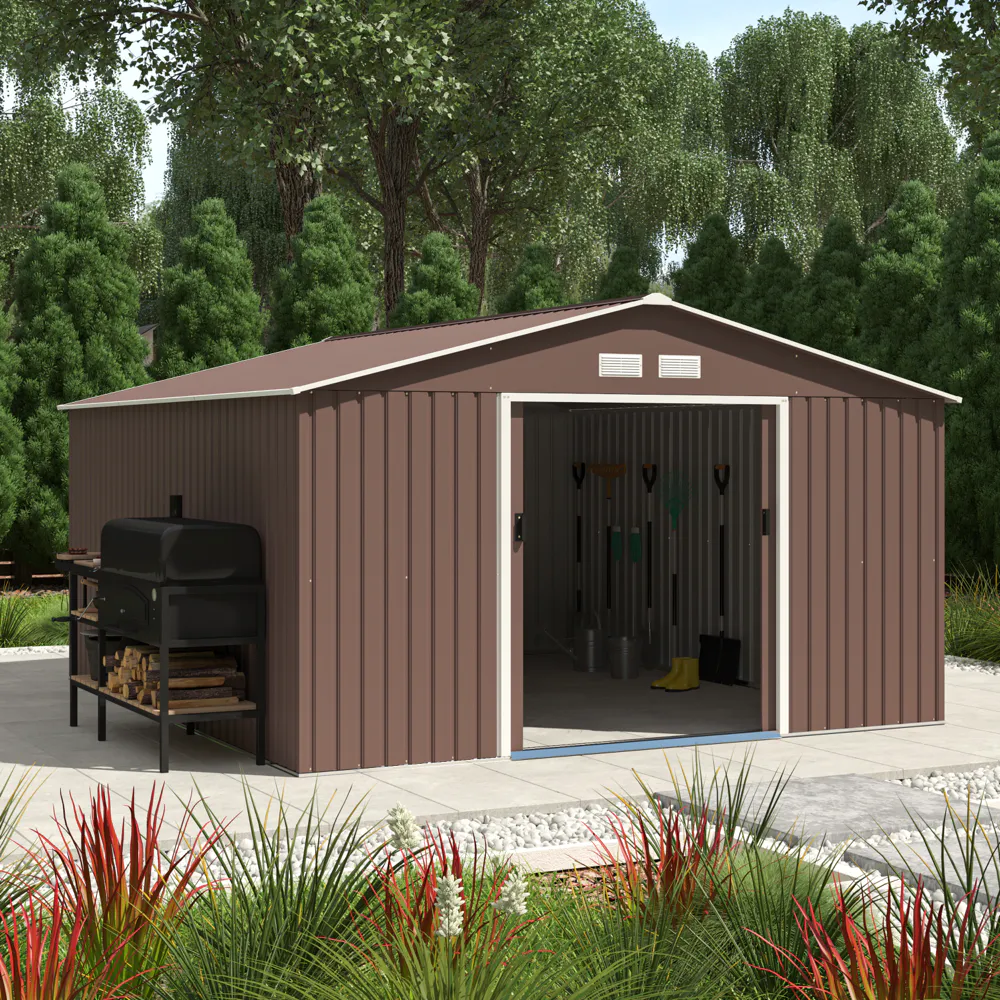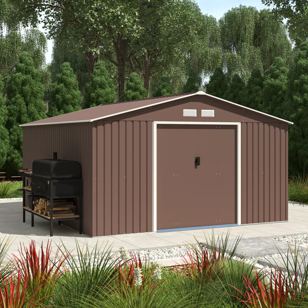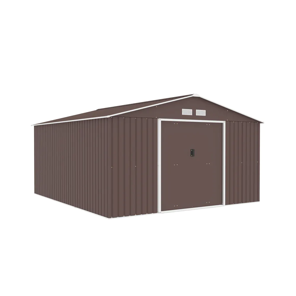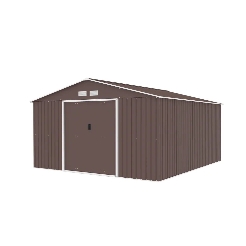 Casetta da giardino in acciaio zincato marrone 3,41x3,86x2,01 m - 114,5kg - 12,3 metri quadri