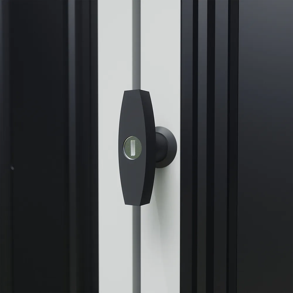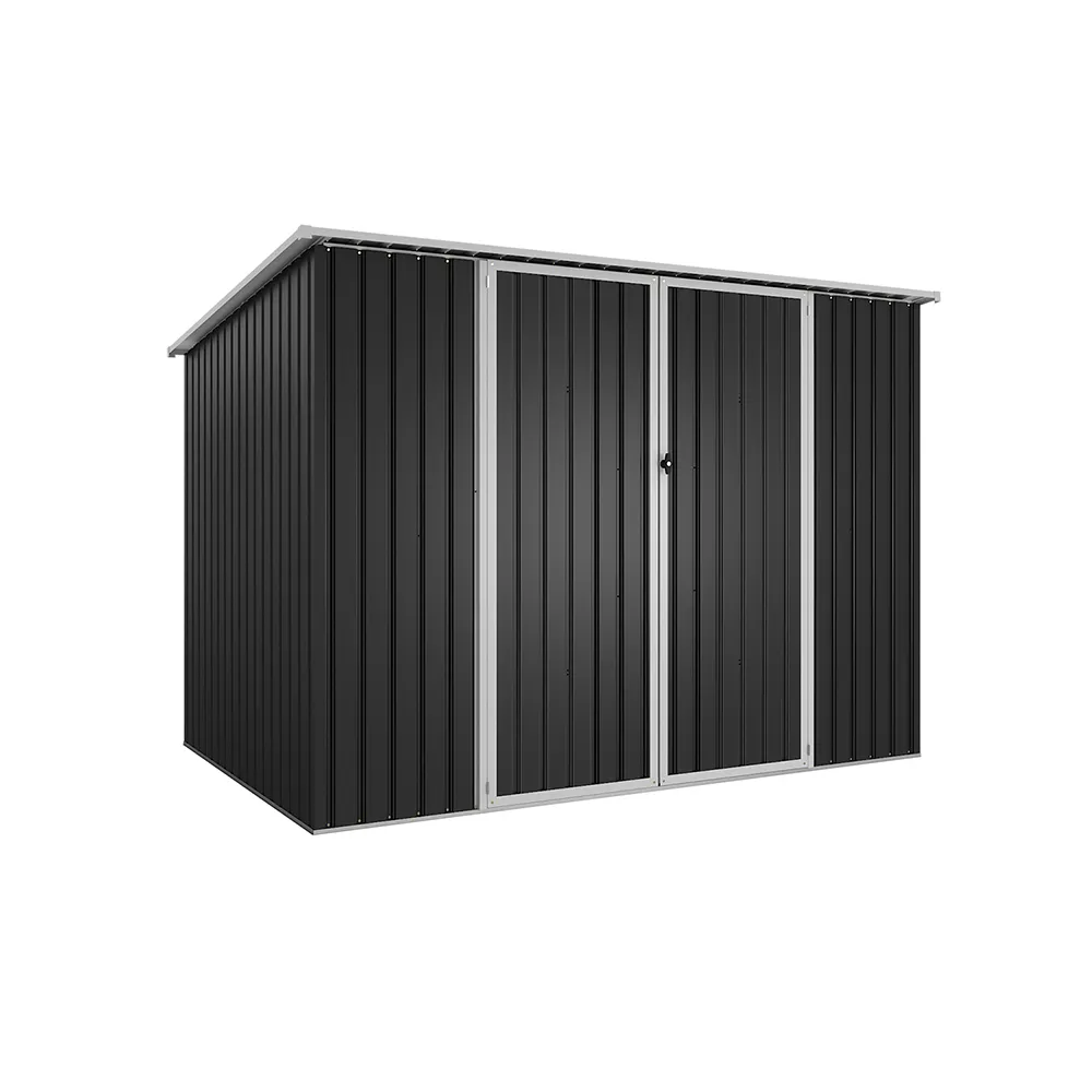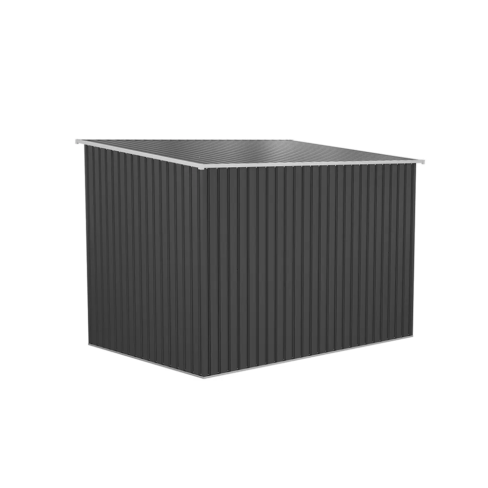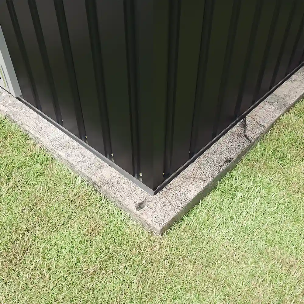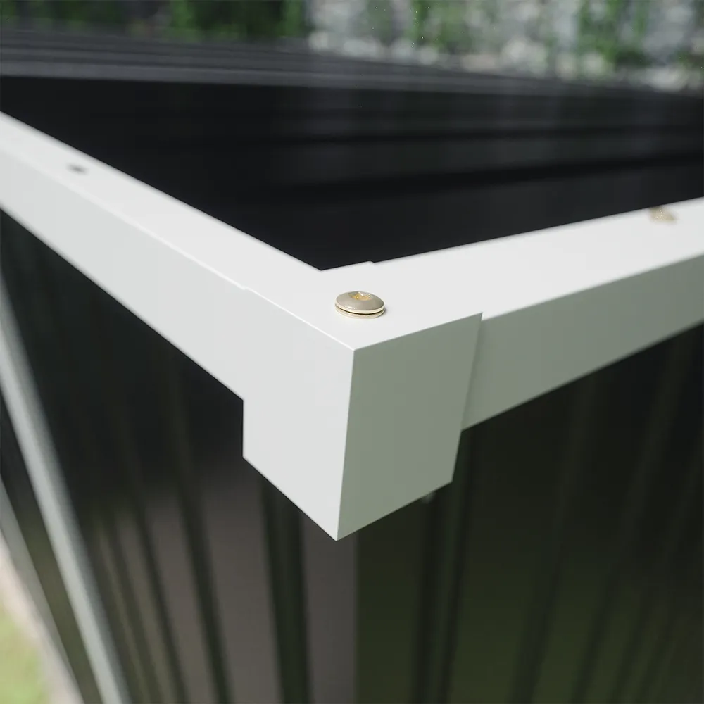 La struttura portante è costruita con acciaio zincato da 0,7 mm di spessore, che conferisce alla casetta una solidità eccezionale. Le altre componenti, come i pannelli laterali e il tetto, sono realizzati con acciaio zincato da 0,5 mm, per garantire stabilità e resistenza nel tempo. I pannelli esterni sono realizzati in acciaio zincato a caldo da 0,32mm con una finitura nera, che non solo offre una protezione efficace contro la corrosione, ma conferisce anche un aspetto moderno ed elegante alla casetta. La doppia porta a battente, che misura 1.42m in larghezza, consente un facile accesso e il deposito di oggetti più voluminosi ed ingombranti.