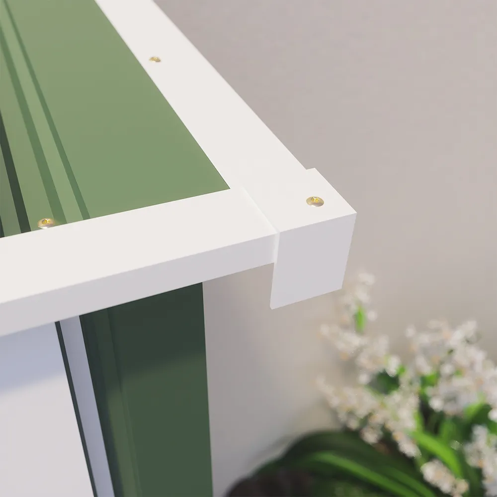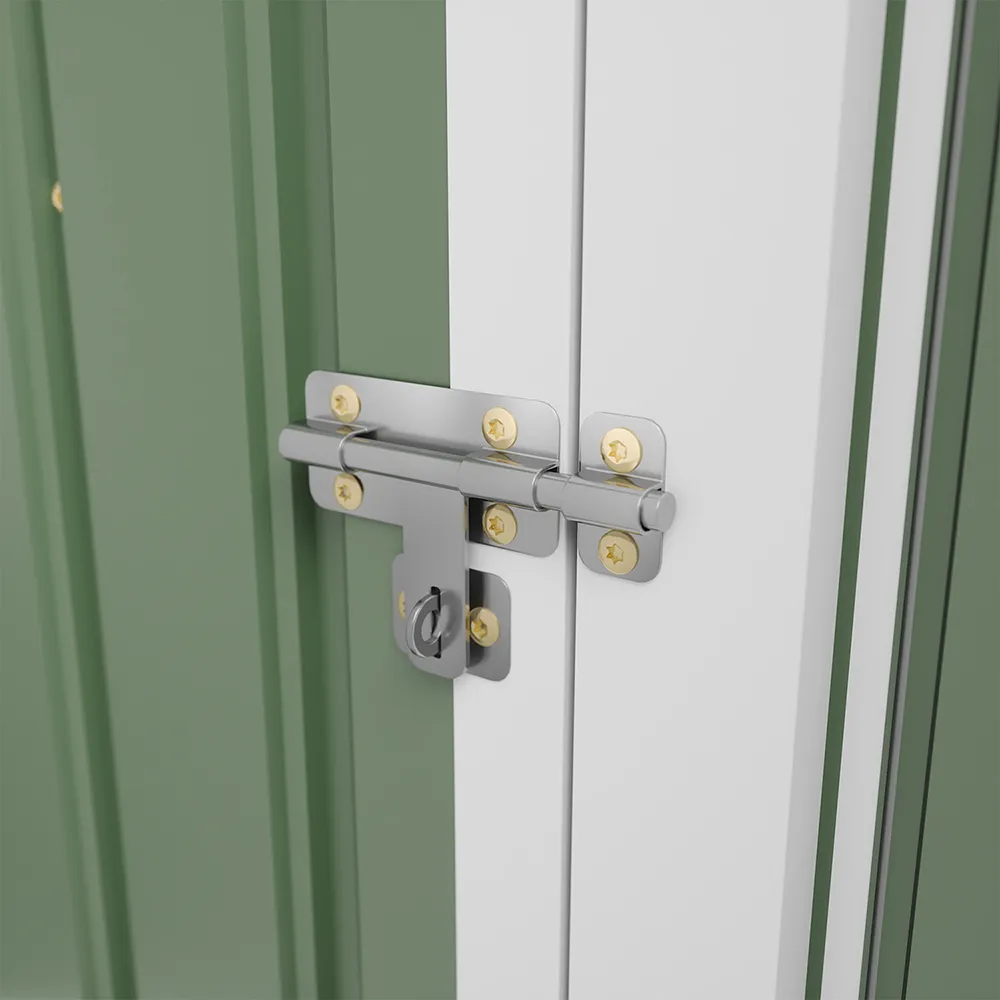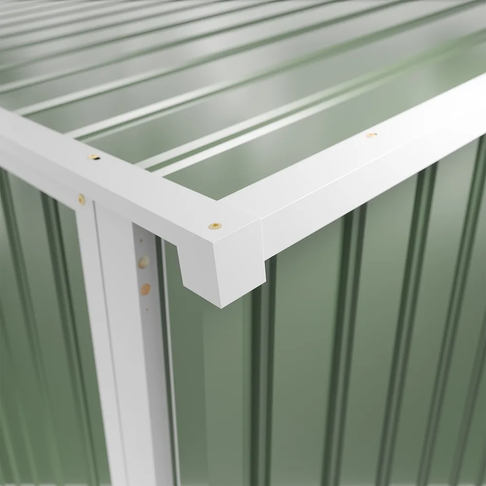 Il box porta attrezzi che ti proponiamo è la soluzione perfetta per chi desidera uno spazio pratico e resistente all'interno del proprio giardino. Realizzato in acciaio zincato e verniciato di verde, un materiale che offre una protezione avanzata contro la corrosione e allo stesso tempo una finitura elegante, questo capanno è progettato per resistere agli agenti atmosferici e garantire una lunga durata nel tempo.