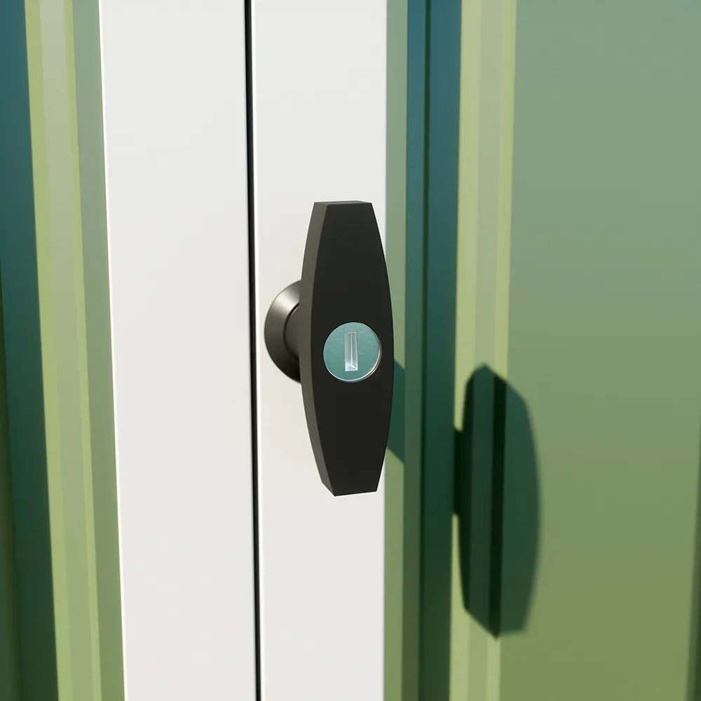 La rimessa da giardino è dotata di una doppia porta anteriore, che facilita l’accesso anche con oggetti voluminosi. Le porte sono provviste di chiusura con serratura e chiavi, offrendo sicurezza contro accessi indesiderati.