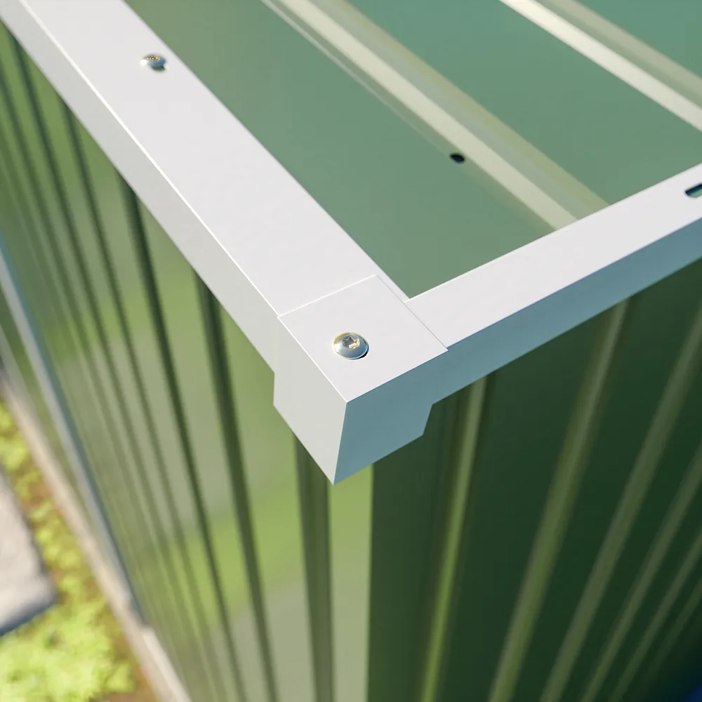 La struttura garantisce grande durata nel tempo, grazie all’ottima resistenza alla ruggine e agli agenti atmosferici. Il capanno in acciaio è realizzato con pannelli da 0,32 mm di spessore e un telaio robusto: la struttura del tetto e delle pareti è composta da acciaio zincato a caldo da 0,5 mm, mentre il telaio della porta ha uno spessore di 0,7 mm. Questa qualità costruttiva rende il capanno porta attrezzi solido e sicuro per l’uso quotidiano.