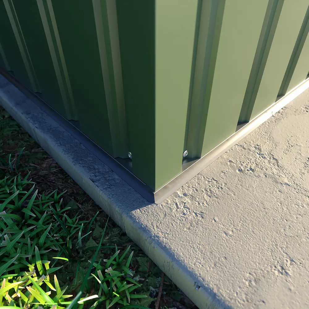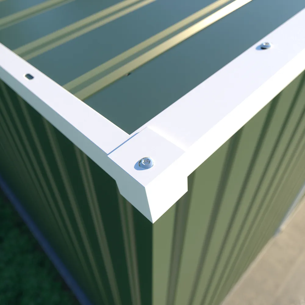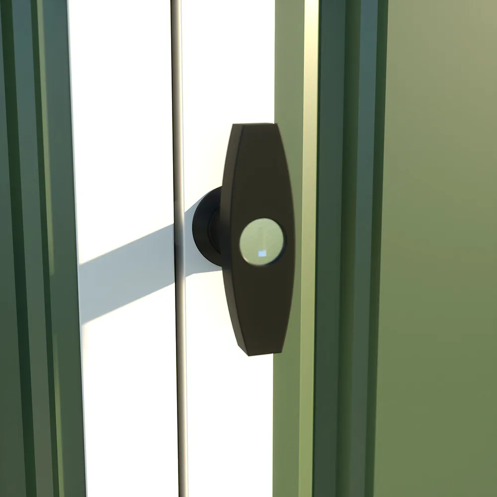 La struttura, dal peso complessivo di 181 kg, è interamente realizzata in acciaio zincato a caldo verniciato verde, un materiale estremamente resistente alla corrosione e agli agenti atmosferici. Il telaio della porta è rinforzato con acciaio da 0,7 mm, mentre il telaio del tetto e le altre parti strutturali presentano uno spessore di 0,5 mm. I pannelli laterali, leggeri ma robusti, sono realizzati in acciaio zincato colorato da 0,32 mm, offrendo solidità e protezione nel tempo.
