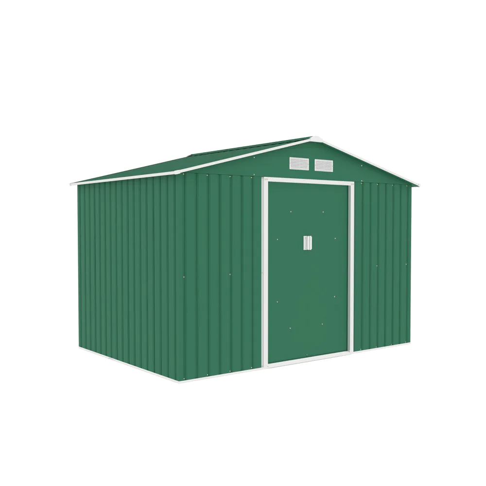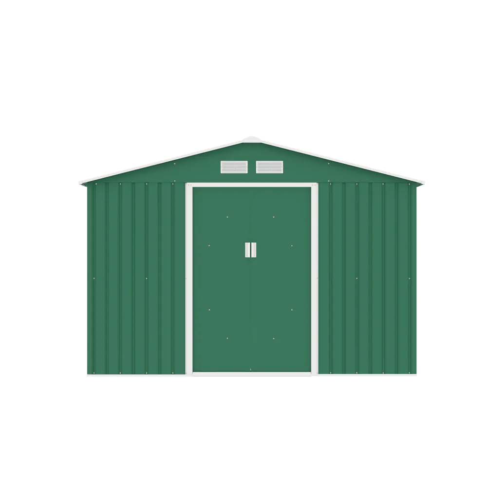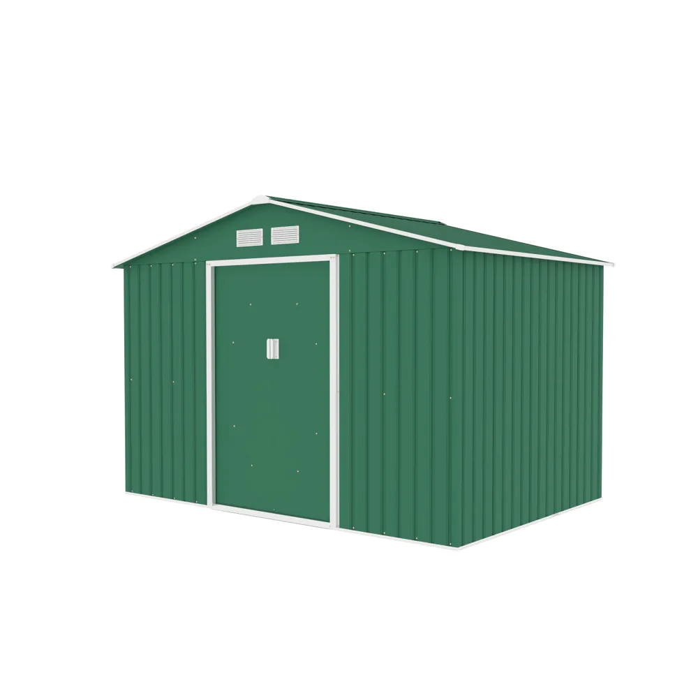 La struttura è realizzata in acciaio colorato zincato a caldo con pannelli da 0,25 mm e un robusto telaio da 0,5–0,8 mm, materiali che assicurano una resistenza superiore nel tempo e una protezione efficace contro la ruggine e la corrosione. La finitura esterna è resistente all’acqua e alle intemperie, pensata per un utilizzo prolungato in ambienti esterni. Il tetto inclinato è progettato per favorire il deflusso dell’acqua piovana e prevenire l’accumulo di neve, proteggendo così la struttura da danni o deformazioni.
