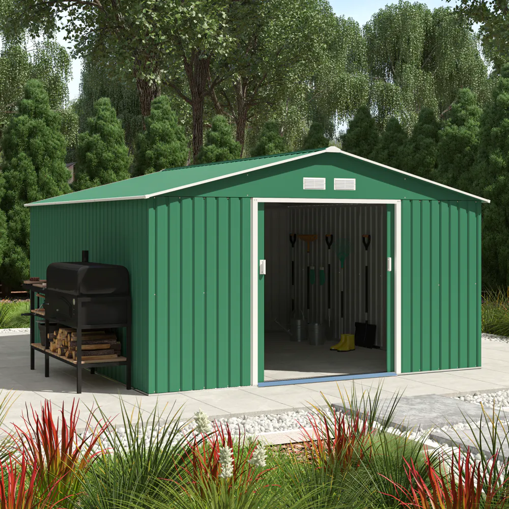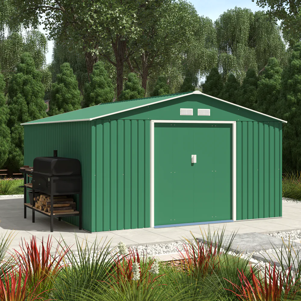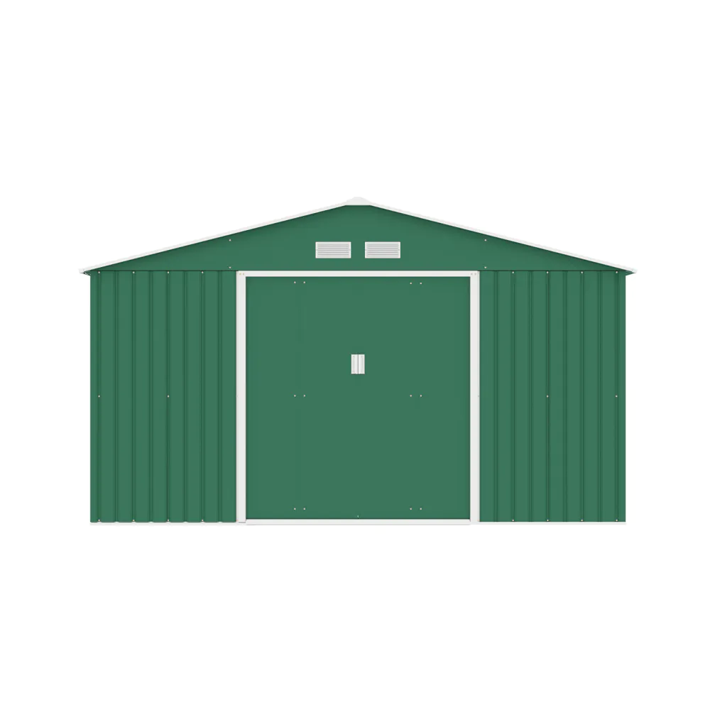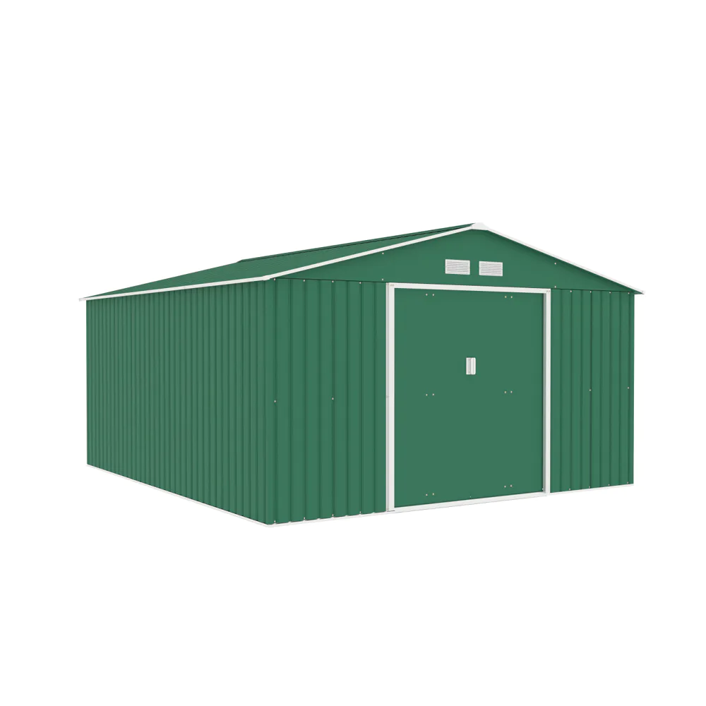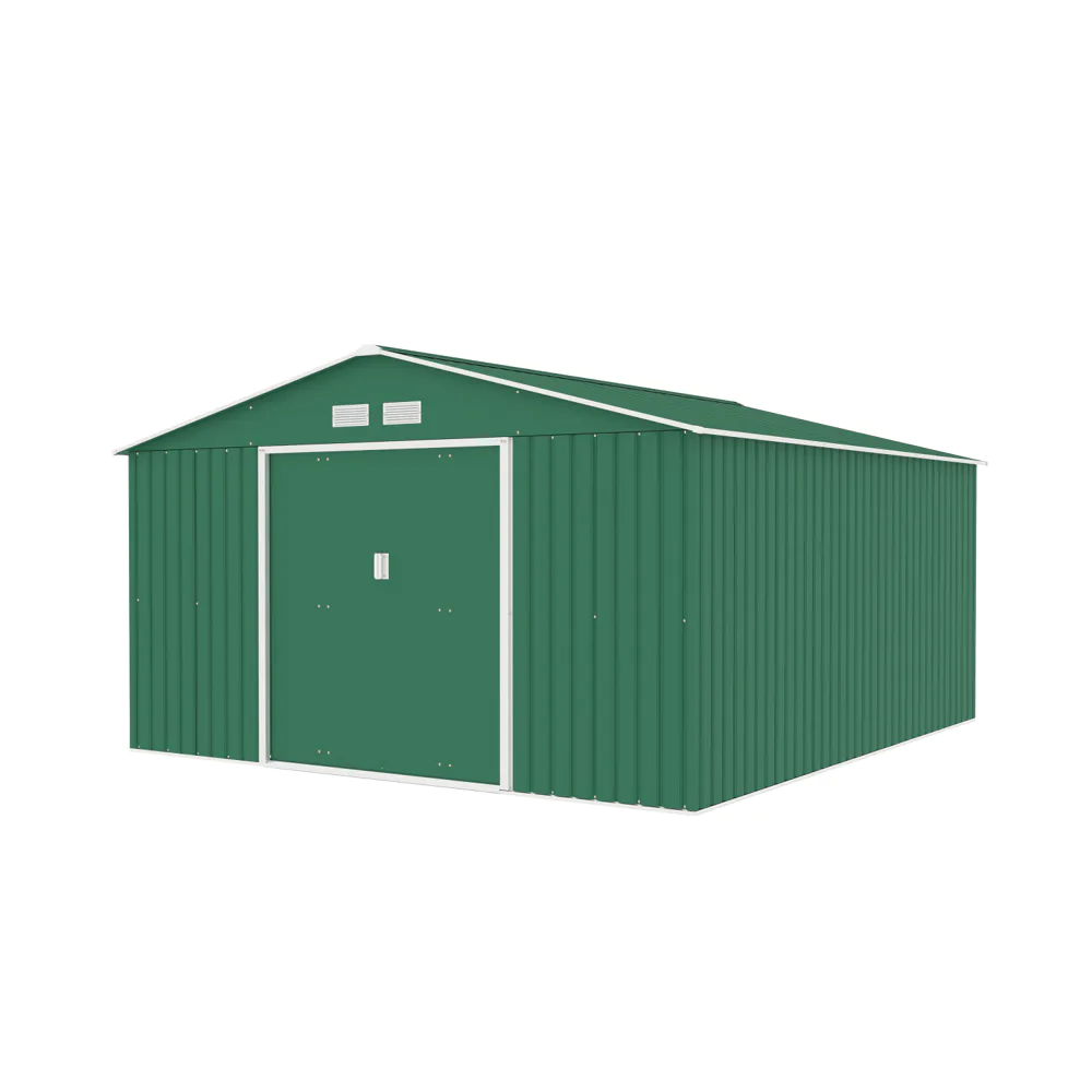 Casetta da giardino in acciaio zincato verde scuro 3,41x3,86x2,01 m - 114,5kg - 12,3 metri quadri