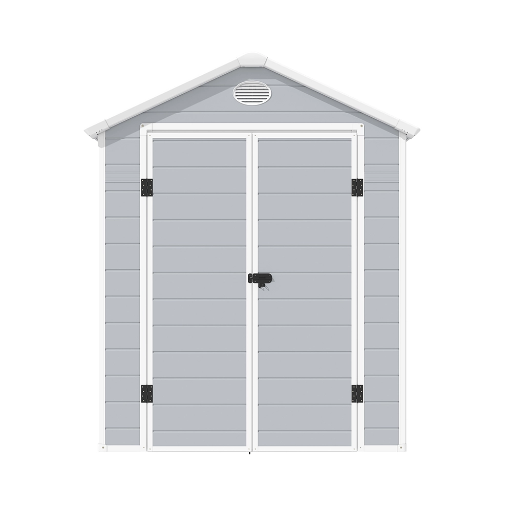 Realizzata in polipropilene a doppio strato da 12 mm, questa struttura garantisce un’elevata resistenza alle intemperie e una lunga durata nel tempo. Il materiale è trattato con una protezione anti-UV, che previene lo scolorimento e il deterioramento causati dall’esposizione solare. Il design moderno, nei colori grigio chiaro e bianco, si adatta perfettamente a qualsiasi ambiente esterno, diventando un elemento discreto ma funzionale nel tuo spazio verde.