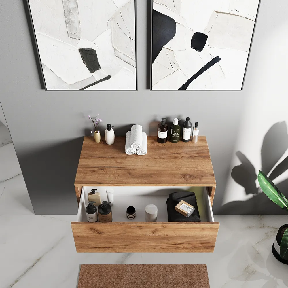 Il design sospeso non solo aggiunge leggerezza estetica, ma facilita anche la pulizia del pavimento sottostante, rendendolo perfetto per la zona living, la camera da letto o il bagno. Il sistema Push&Pull permette l’apertura dei cassetti con una semplice pressione, eliminando le maniglie per un look minimal e pulito. Il meccanismo soft-close garantisce una chiusura morbida e silenziosa, evitando rumori e usura nel tempo.