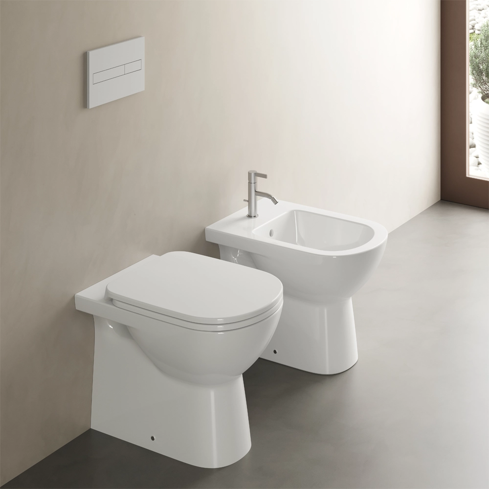 Ceramica Dolomite sanitari filomuro vaso e bidet con copri-wc soft-close | Gemma