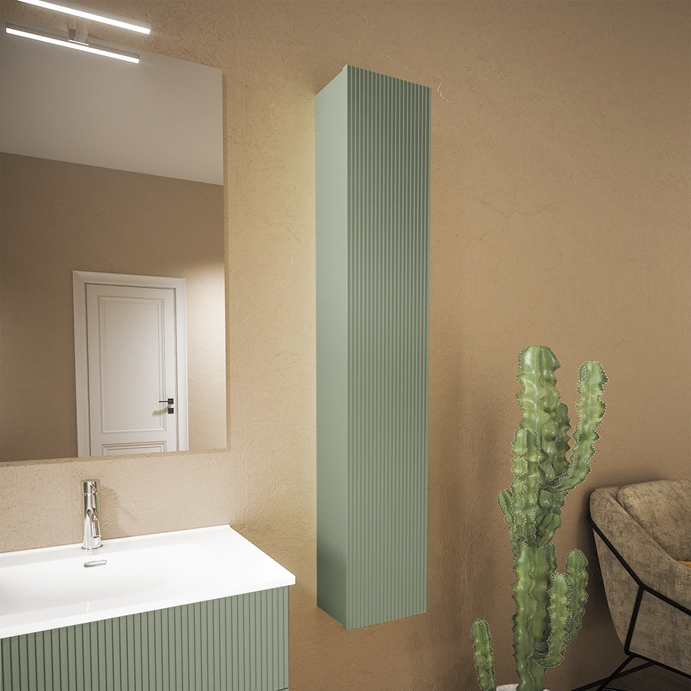 Colonna bagno sospesa 150x27x20cm cannettato verde opaco con anta reversibile | Kaindy
