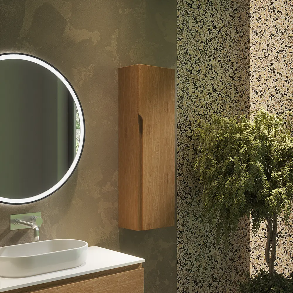 La colonna è realizzata in legno MDF di colorerovere chiaro, è preassemblata ed include il set di viteria per l'installazione a muro. E' disponibile in 4 differenti colorazioni per offrirti la migliore possibilità di scelta e di accostamento con lo stile del tuo bagno.