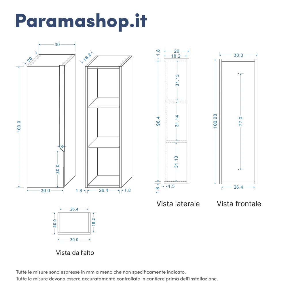 Le sue dimensioni consentono di custodire comodamente al suo interno tutto il necessario per il tuo benessere quotidiano mentre con la sua profondità di 20 cm si presta ad essere una perfetta soluzione salva-spazio. Questa colonna è, inoltre, reversibile. Potrà, pertanto, essere installata con orientamento a destra o a sinistra, a seconda delle preferenze o del layout del bagno.