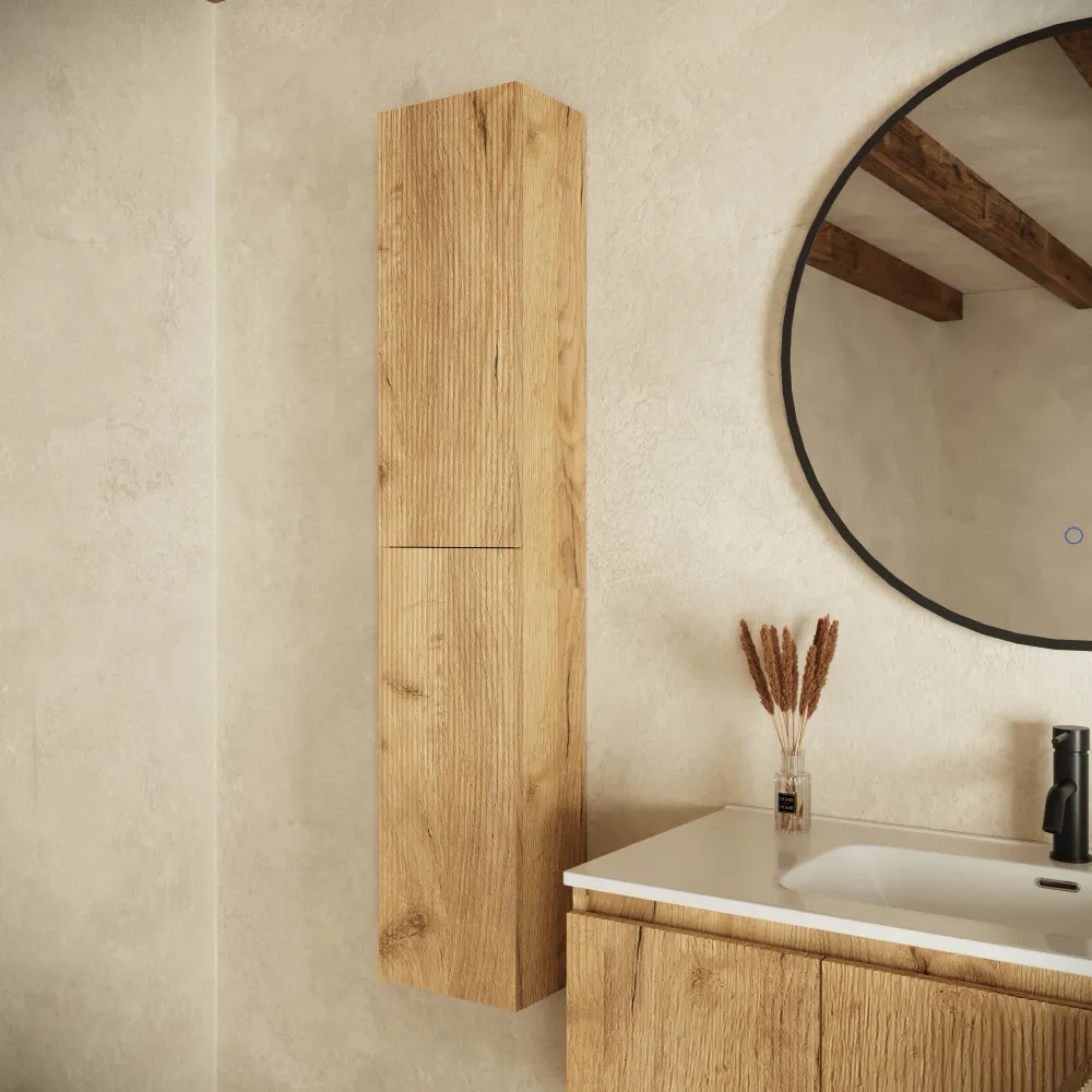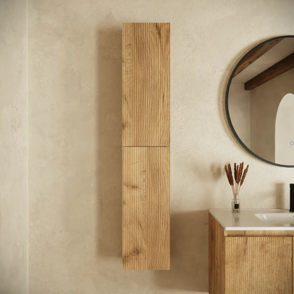 Colonna bagno sospesa cannettata 140cm rovere chiaro reversibile | Pelion